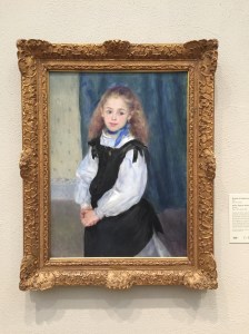 This attractive eight-year old girl, while older than my granddaughters, caught my eye, as she seemed a striking amalgamation of my two beautiful granddaughters.  I don’t know how long I stared upon her lovely, innocent face as she glanced away from the painter, but I had to go back for one more glimpse before I left (I read later that Renoir attended Ms. Legrand’s wedding eighteen years later, a thrill I hope to enjoy with my own granddaughters).