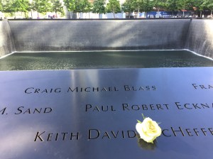 Unfortunately, all the museum tickets were taken for the day so we didn’t get to go in, a visit we heard later that takes at least 4-hours (which we didn’t have).  Before we left, we heard a plane overhead and witnessed quite an eerie sight of the plane’s reflection on the side of the new World Trade Center, a sobering reminder of the tragedy of that day.