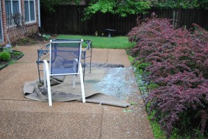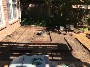 Originally, it was just a grassy space (seen here after a wind storm blew the glass off our patio table).