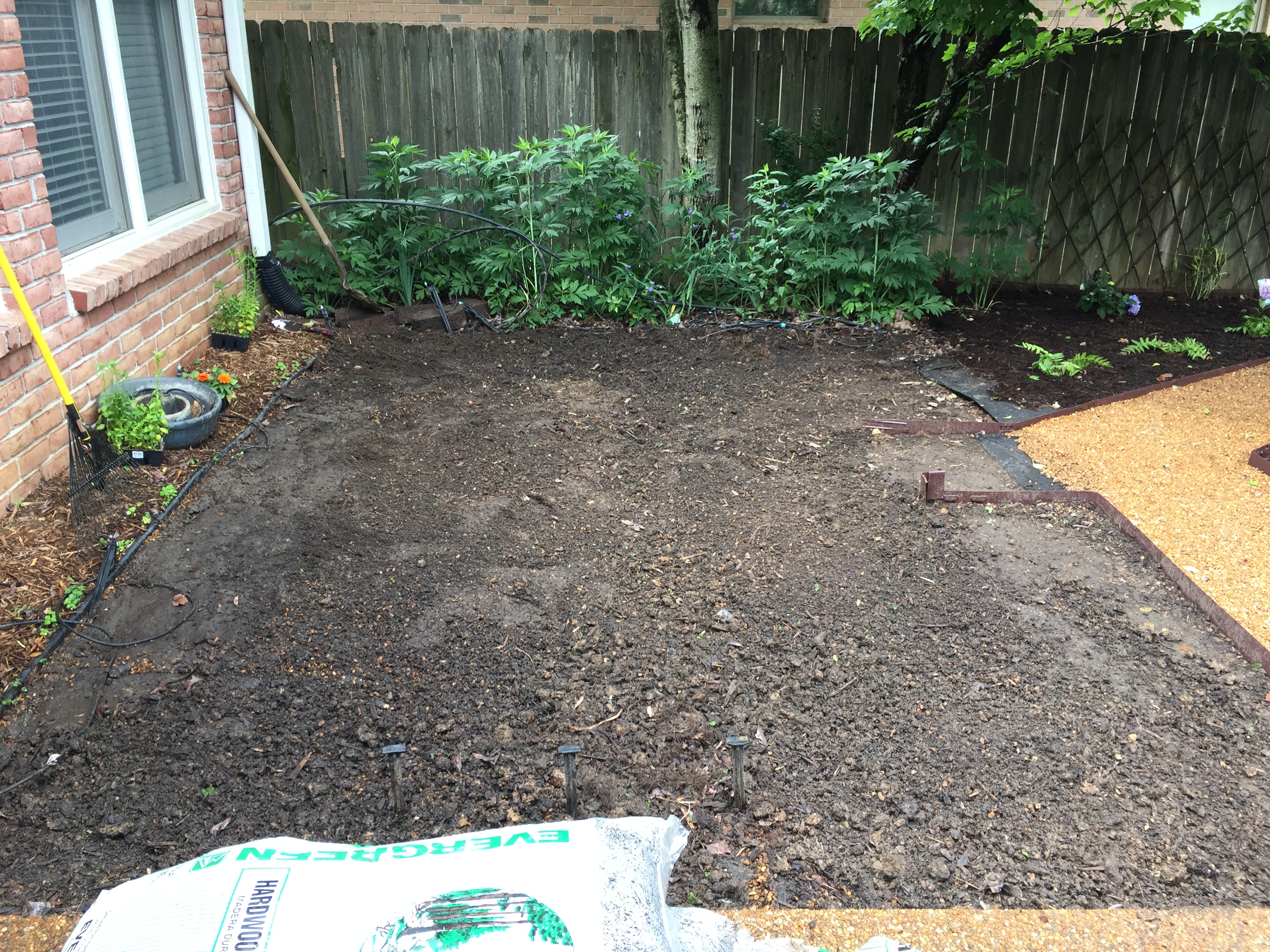 Once I had removed all of the pea gravel, weeds and plastic edging, I was left with a dirt bed ready for my new design.