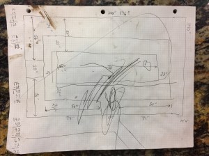 You can see that this is a rough field drawing, complete with mud smug marks and hand calculations (with corrections) for measurements. My granddaughter even added her own artistic flair to the middle of the concept, which obviously rendered this a piece of artwork for the frig.