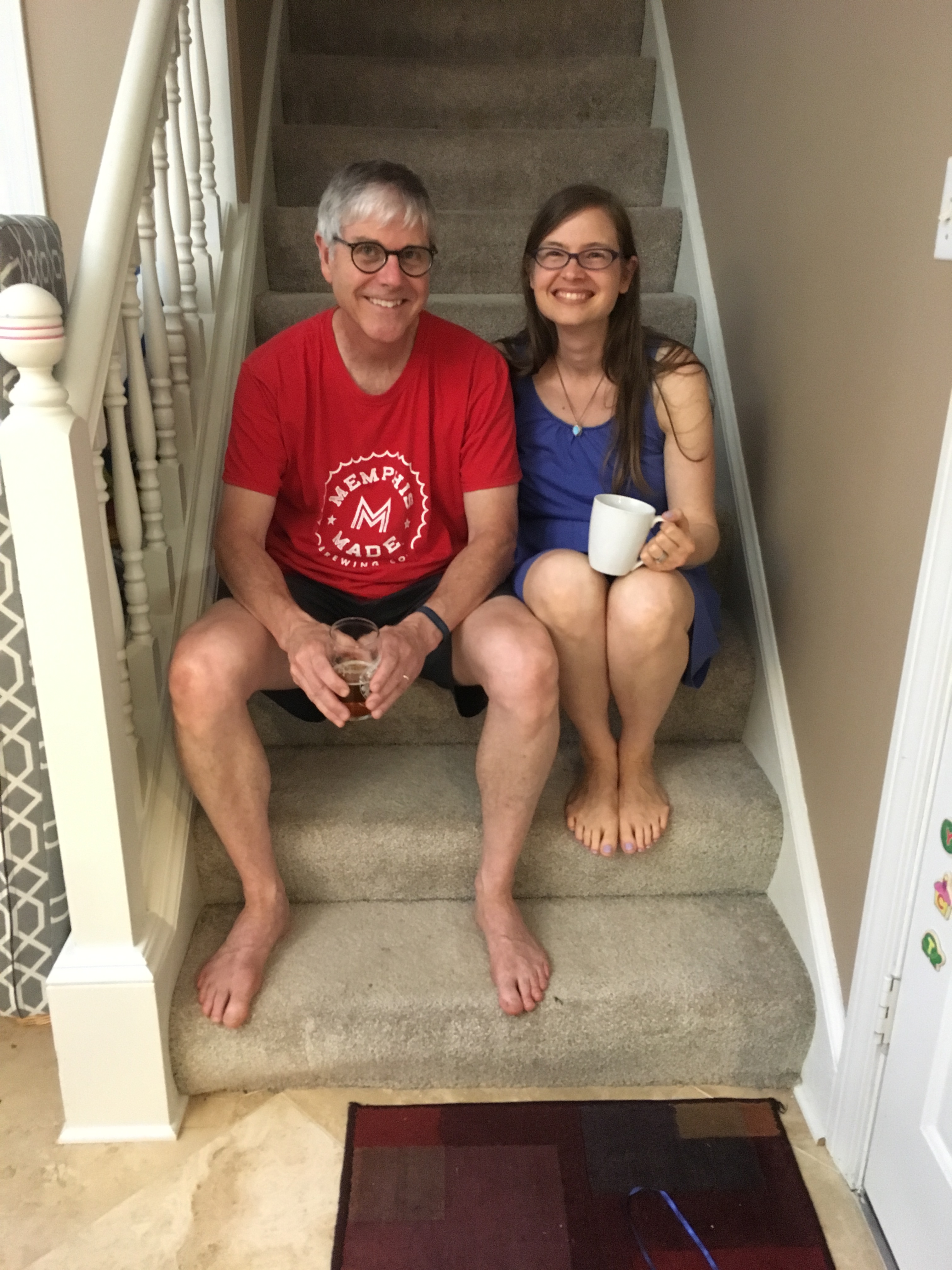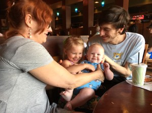 With most firework displays not starting until 9:00 or 9:30, well past our little ones’ bedtime, our festive participation was limited to hearing pops and bangs from the fireworks being shot off in our neighborhood. Sometime before midnight, we were awakened by the sounds of our grandson crying. At first my wife thought the loud fireworks might have scared him and so she rushed upstairs to comfort him. When she went in his darkened room, she couldn’t find him in the bed. When she turned on the lights, she discovered that he had fallen off the bed between the bed and the wall and had slid head first under the bed. All that was visible were his feet, sort of like “Wicked Witch of the West under the house” style. His parents ran in and his dad had to help my wife lift the bed up so that my daughter could pull him out. Needless to say, this made for a memorable fourth.
