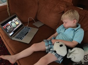 …here my grandson falling asleep watching a movie that I too had fallen asleep watching before.