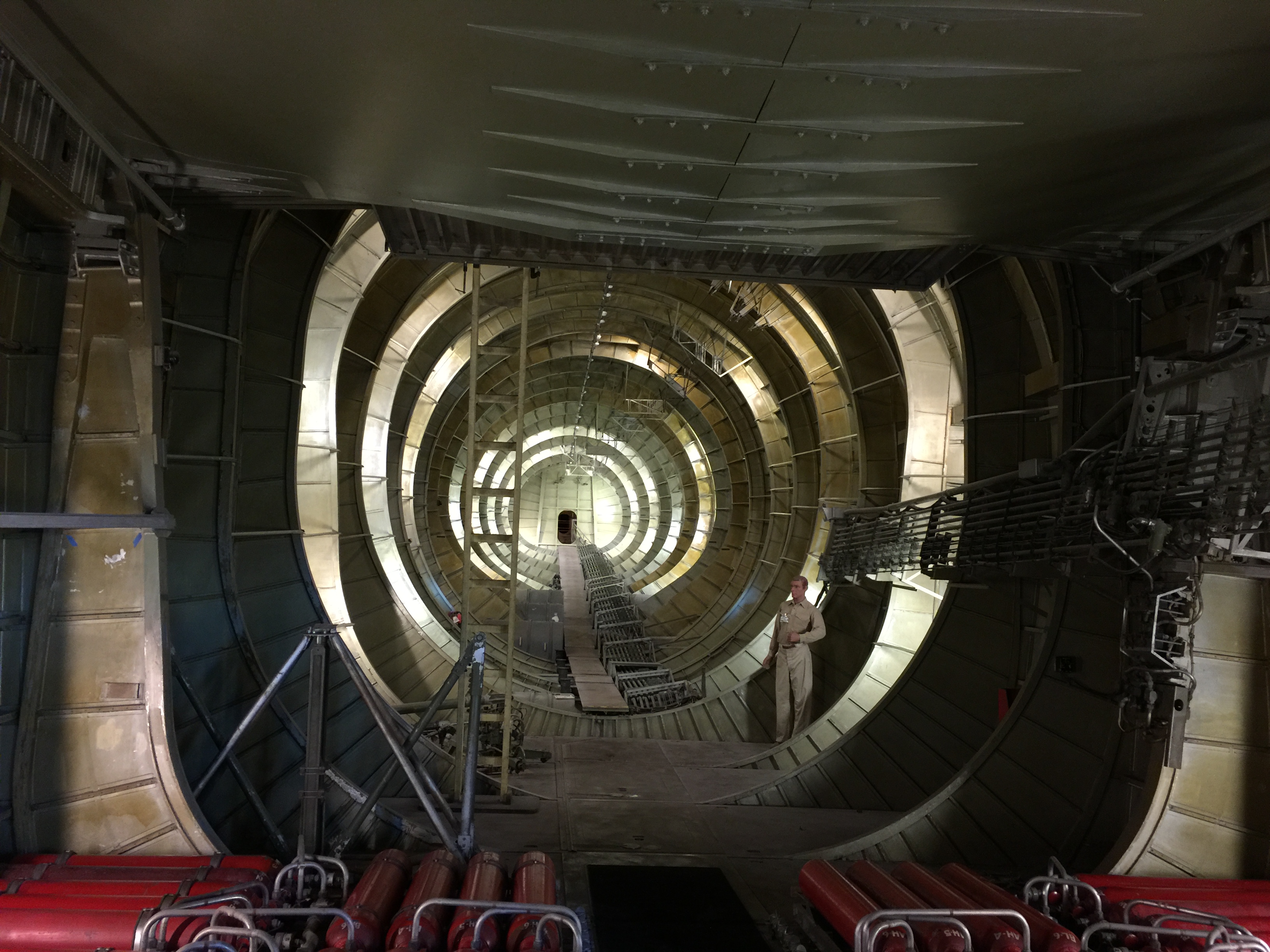 From inside the cargo hold, you can get a perspective of the massiveness of this 320 ft. wingspan, 218 ft. long, 8-engined behemoth (its wingspan is larger than a 747 or A380).