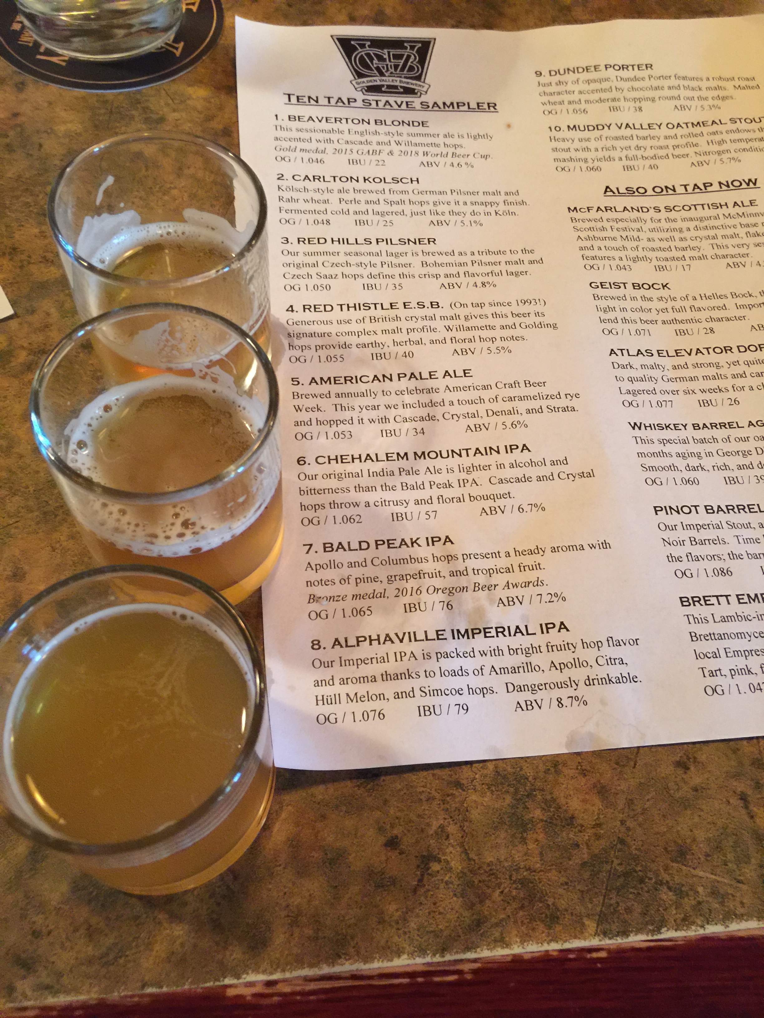 Never before in my experience had so much planning gone into drinking beer.  My brother did an excellent job of researching the best breweries, the best brewpubs and the best brewpubs for food as well to come up with a three-page itinerary that also interspersed fun activities (we couldn’t just drink beer).  He narrowed the list of potential brewpubs down to 16.  This was not an easy undertaking considering there are 275 microbreweries in the state of Oregon with 105 in Portland alone (as of November 2017). Our informal goal was to visit at least three brewpubs each day over the five days we had for our trip; we even considered a beer breakfast our last day to make sure we met that goal but in the end chose not to.  Considering that Memphis has only six microbreweries and one brewpub, we would outdistance my hometown in just a couple of days.