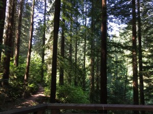 After all the food (and beer) we’d had over the previous four days, we felt some exercise was in order and so we drove to the Hoyt Arboretum and took what turned out to be a 3.5 mile hike among the redwoods, spruce, and firs.