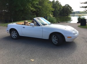 But as of the fall release of the 2019 Mazda MX-5 Miata, my 1994 Miata, affectionately known as “The Marshmallow,” (so named by one of our artist friends for its toasted tan colored top over miniature white body) has reached that significant milestone—a 25 year-old classic!