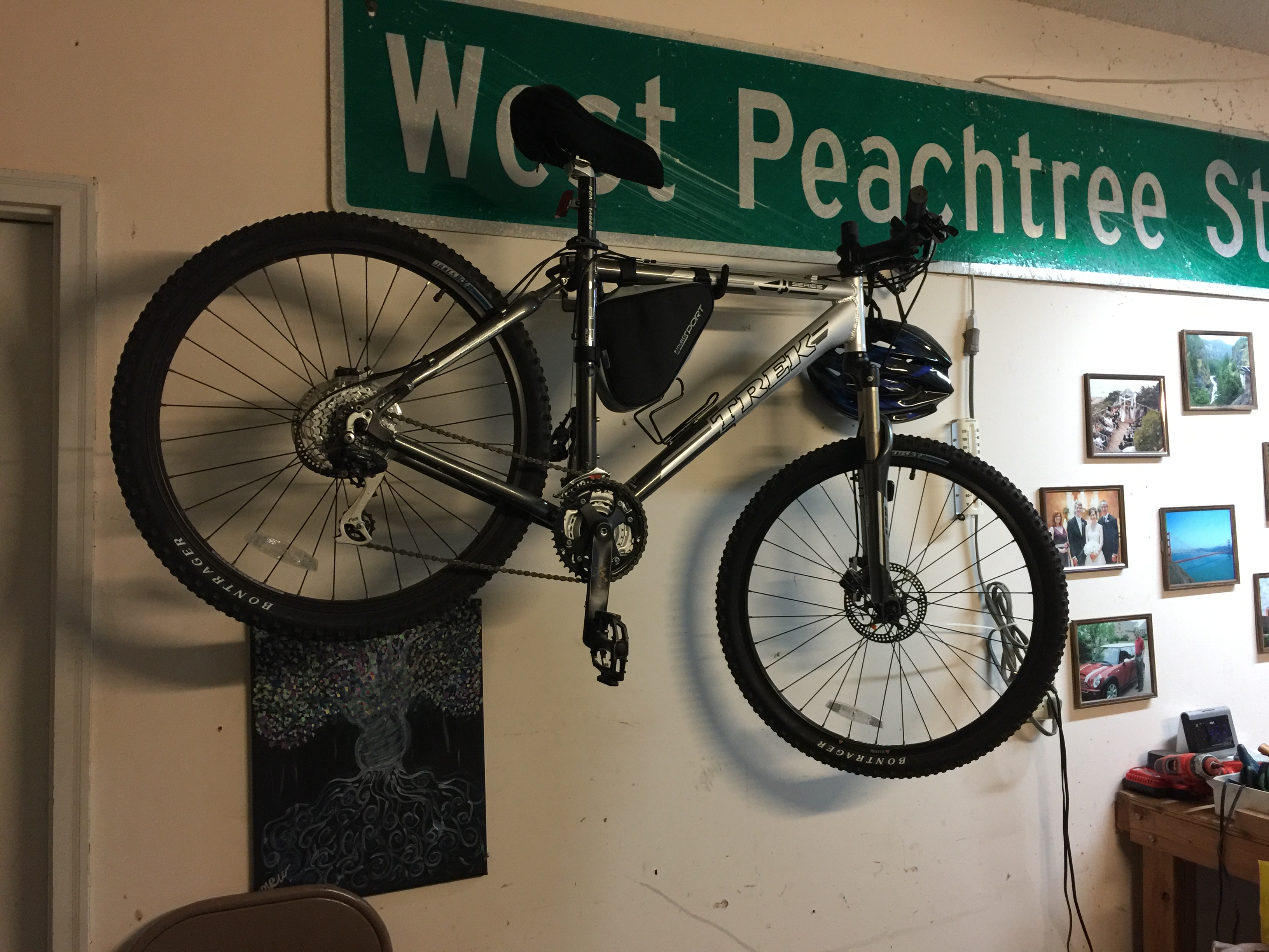 But in spite of this being on my list of things I wanted to do, and in spite of my seeing it every time I went into the garage, I just had not gotten around to taking the bike off the wall where it has hung for all this time.
