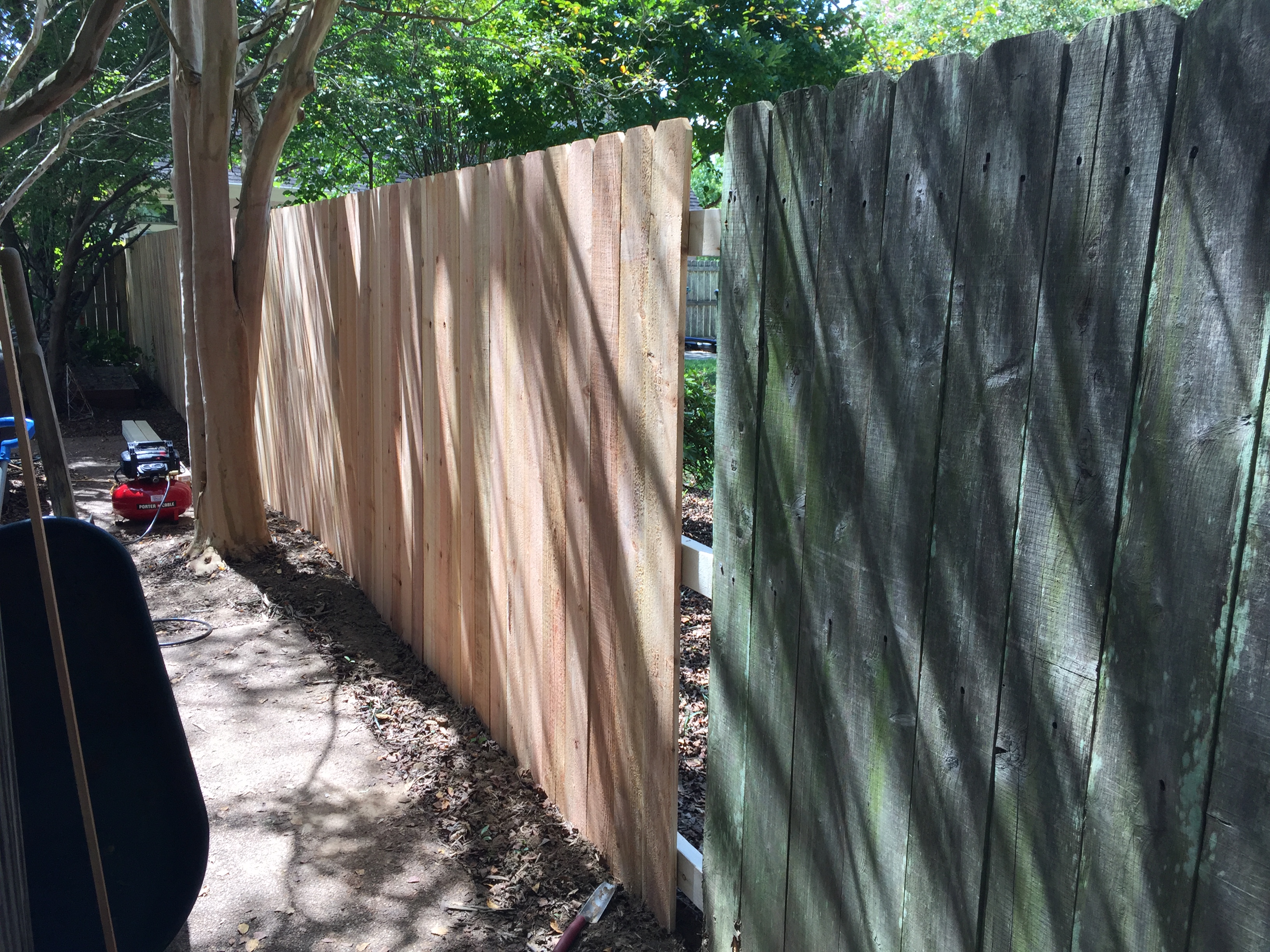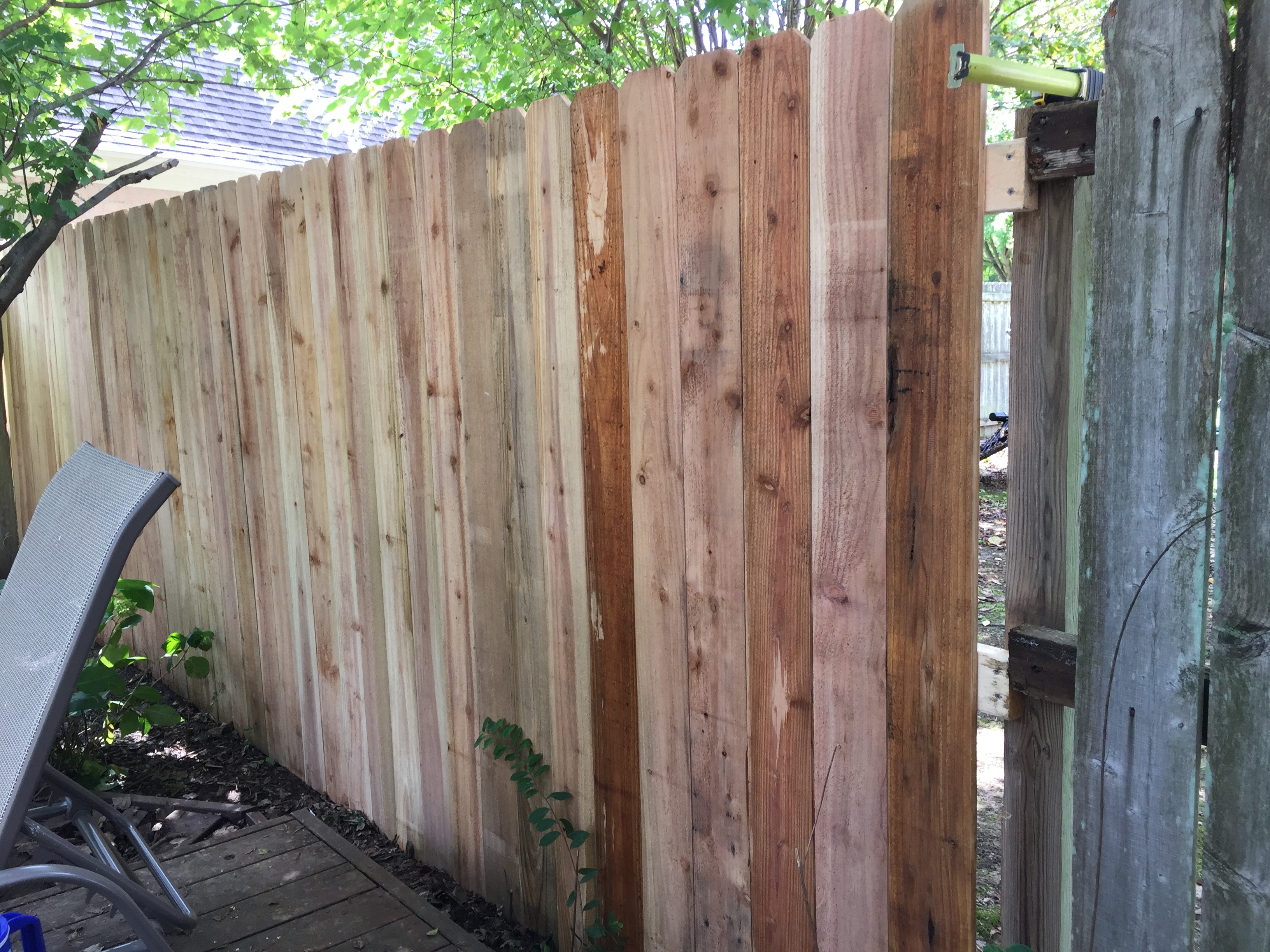 Third, while the nail gun made the attaching process very fast (much faster than nailing with a hammer), lining everything up and making sure it was plumb and level took a good bit of time. It ended up taking me from start to finish, about four to five hours to complete a fence section (teardown through replacement).