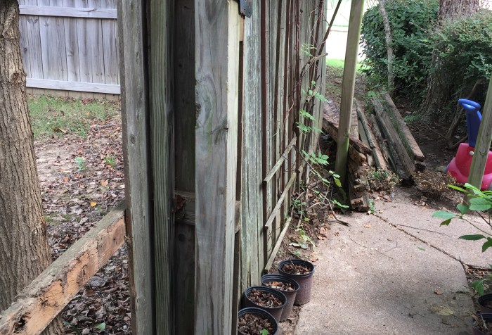 Working on the fifth section, I encountered two more challenges. First, this section included the connection to the gate into the back yard. When we had the pool installed in … Continue Reading Re-Fence or Defense? Yes, Victory!