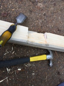 I finally got it notched well enough that the crossbeam did not have to bow too much to be nailed into the post.