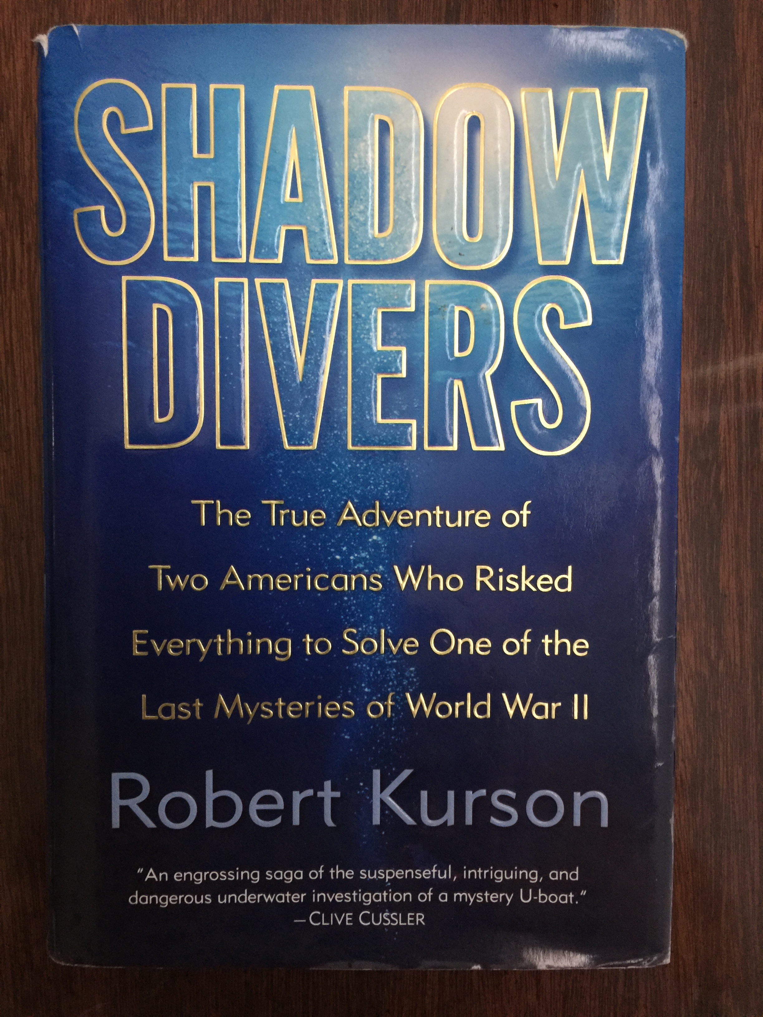 I am a long time fan of Clive Cussler and his swash-buckling Dirk Pitt novels having read every single one of the 23 books Cussler has published over the past 45 years.  Almost all of these stories follow a similar organization whereby they start out with the mysterious loss of a real life vessel whereupon it gets discovered as a part of Pitt’s underwater diving escapades averting some other terrible tragedy.  So when my youngest son gave me for my birthday, Robert Kurson’s Shadow Divers:  The True Adventure of Two Americans Who Risked Everything to Solve one of the Last Mysteries of World War II, endorsed by none other than Clive Cussler himself, I figured it would be an enjoyable read.