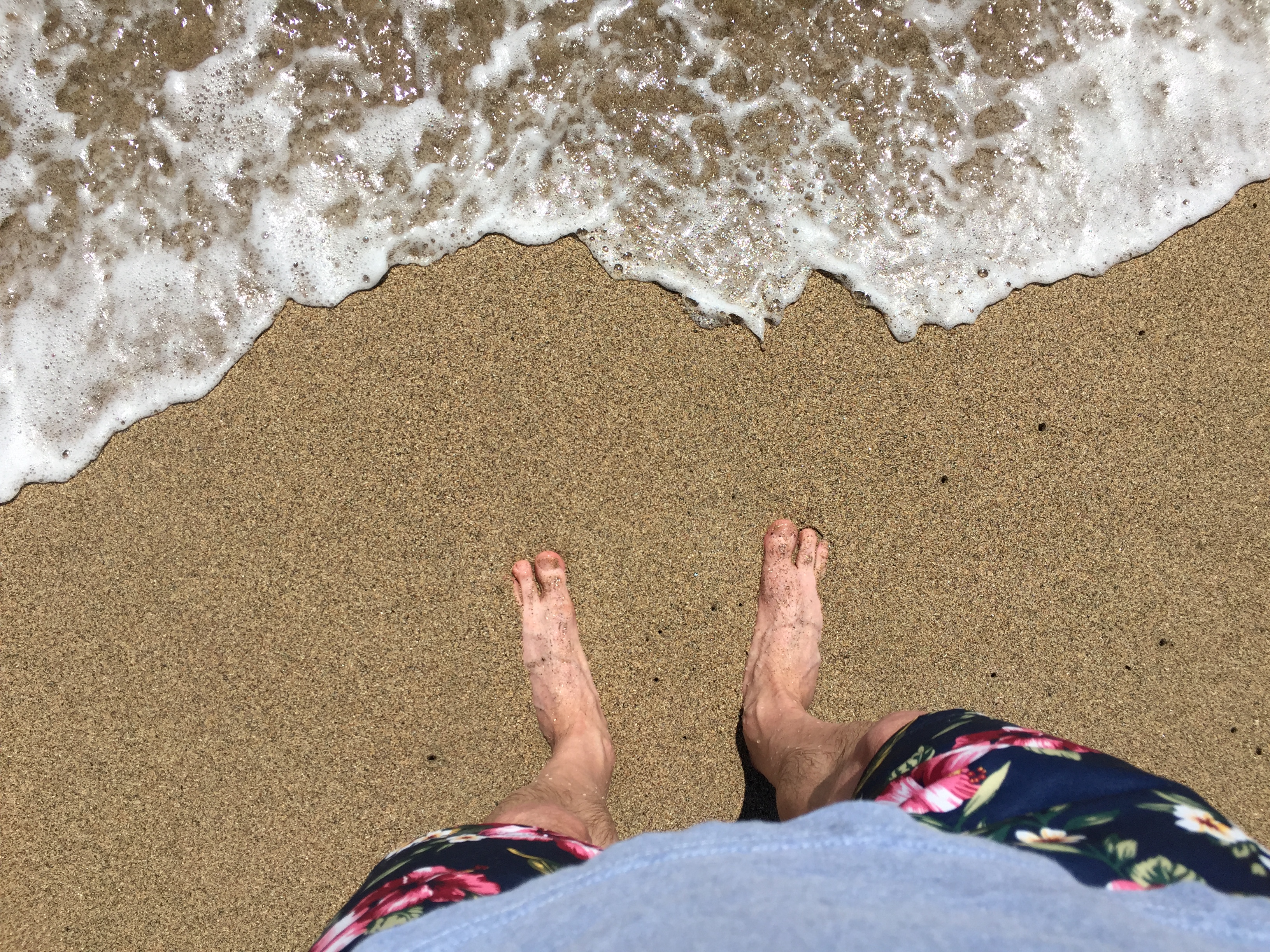 It was nice to feel the warm waves lapping at my feet and the suction of the water retreating, at least until a rogue wave surprised me coming up almost to my waste and nearly knocking me down. Probably recognizing me as a dumb tourist, a local hurried down to me and tried to sell me some jewelry or ninja patches while I furiously tried to dry off my iPhone. At least I didn’t drop it.
