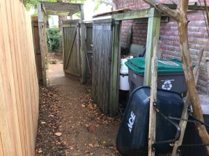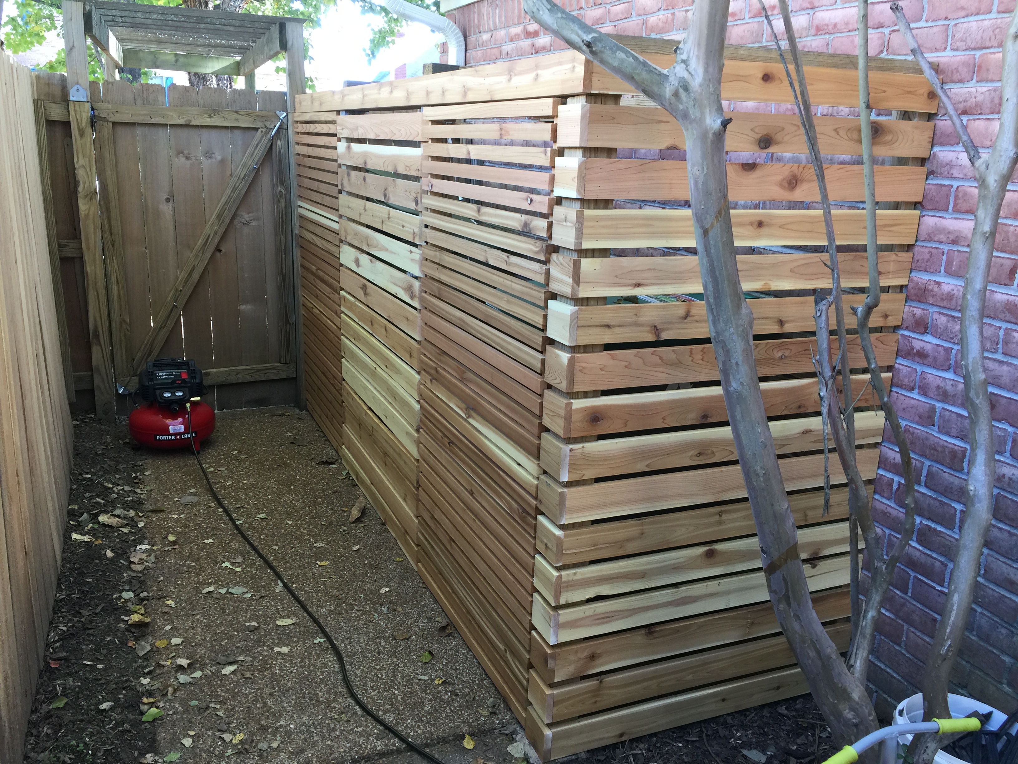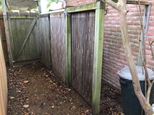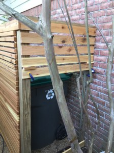 Ironically it was a visit to see my oldest son and his family who now live south of San Francisco that served as inspiration for a garbage blind makeover. Just a half block from his home, we passed a house that had a very nice fence with stained and finished boards running horizontally. Most fences, in particular the one I had just completed have the boards in a vertical orientation.