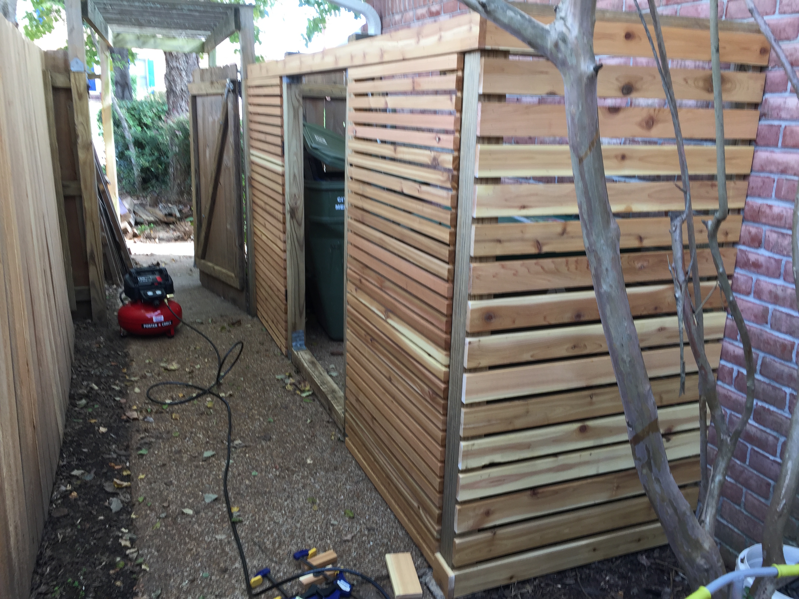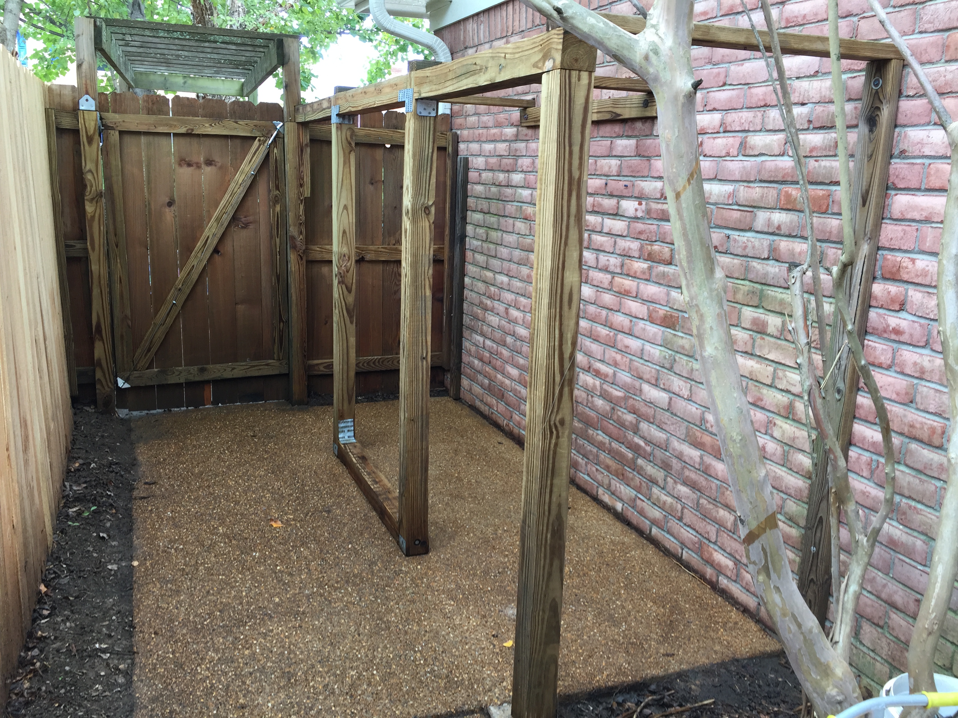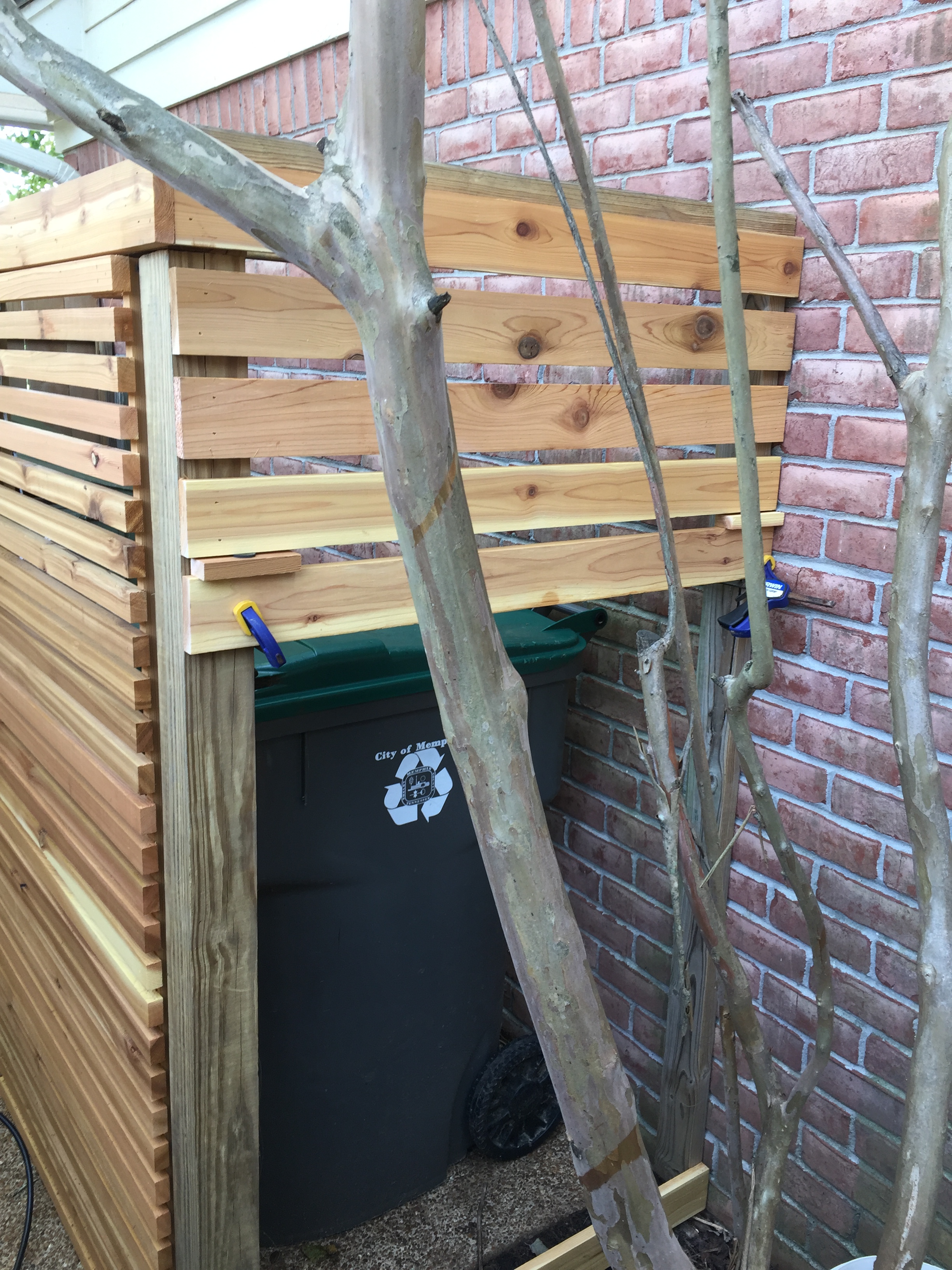 Other than having to work around this crepe myrtle, attaching the boards at the end went fairly quickly…
