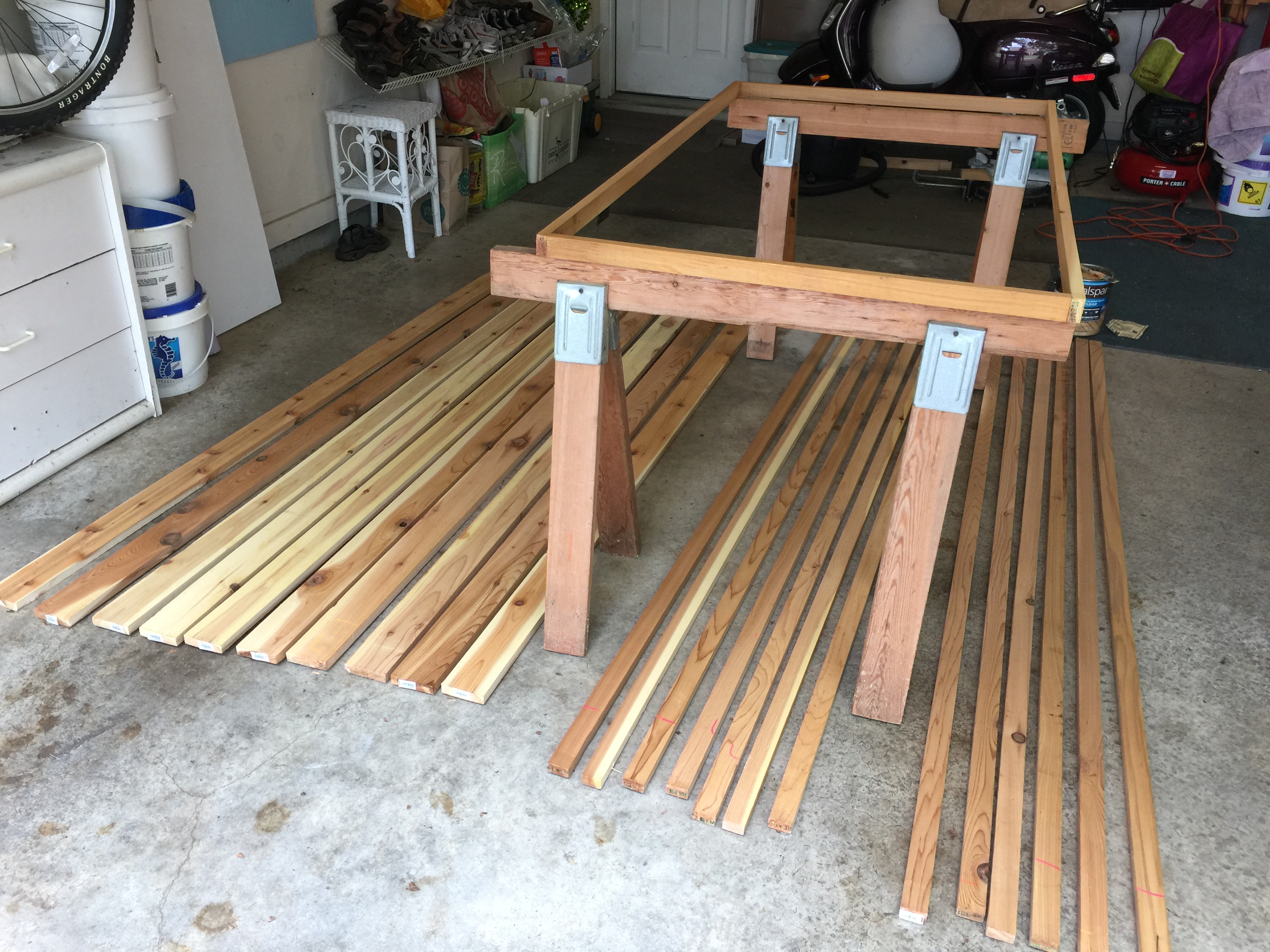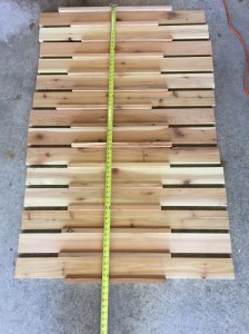 After a visit to my favorite toy store (Lowe’s) to explore building materials, I settled on cedar boards that had a smooth finish on one side and came in the two sizes I need, 1 X 2 and 1 X 4 boards.