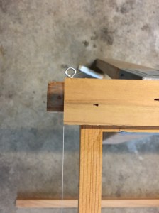 First, when I built the gate frame, I realized that while my son and I had done a good job of making the 4 X 4 frame plumb and level, the existing fence post 4 X 4 was ¾ of an inch out of plumb at the top. I decided that a true square gate frame would be stronger than an odd shaped one and so made it square. This meant that my gate boards would be ¾ of an inch longer at the top than at the bottom. To know how long each board would need to be, I ran a string from the bottom of the frame to the top.