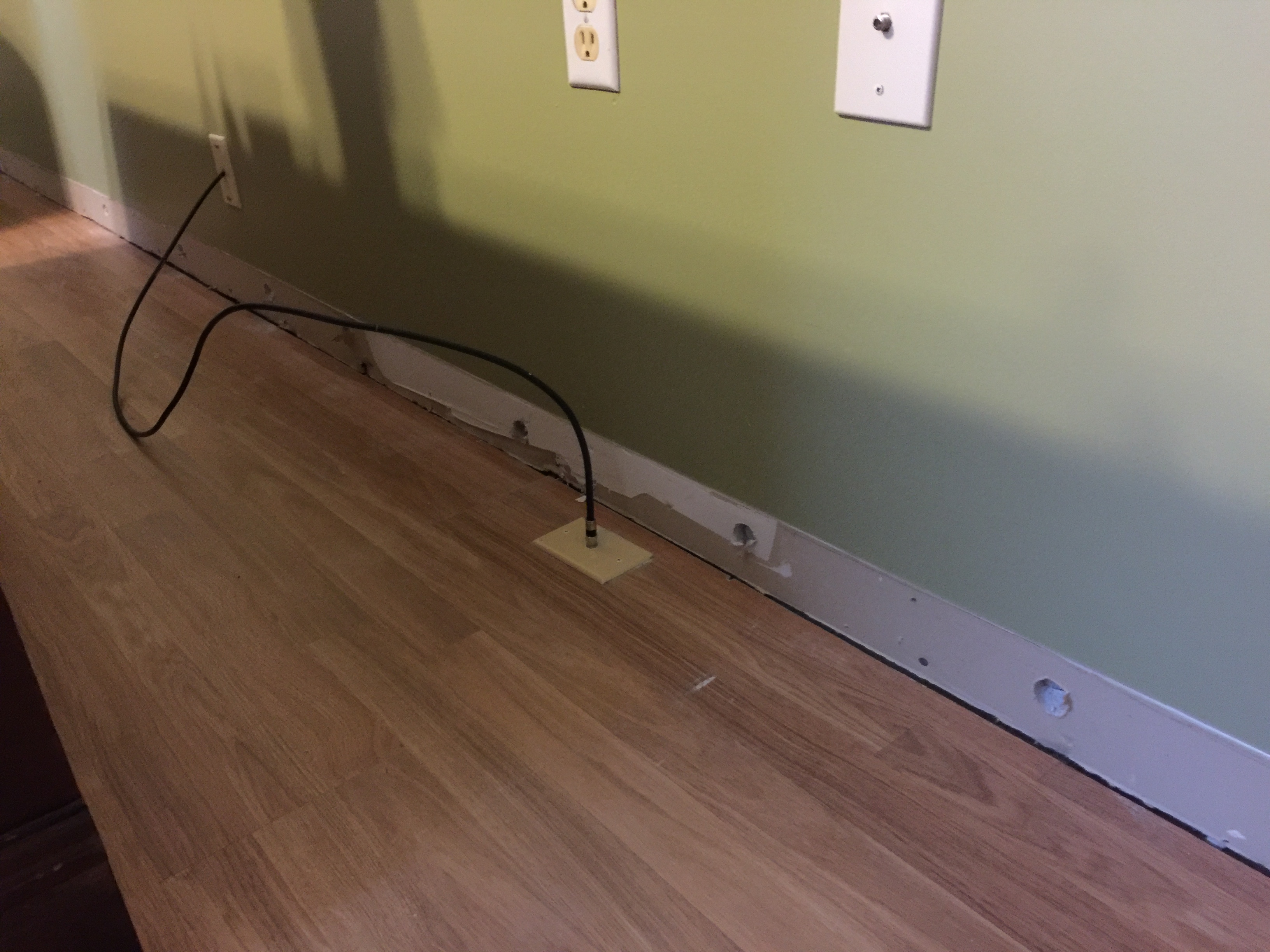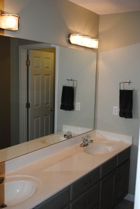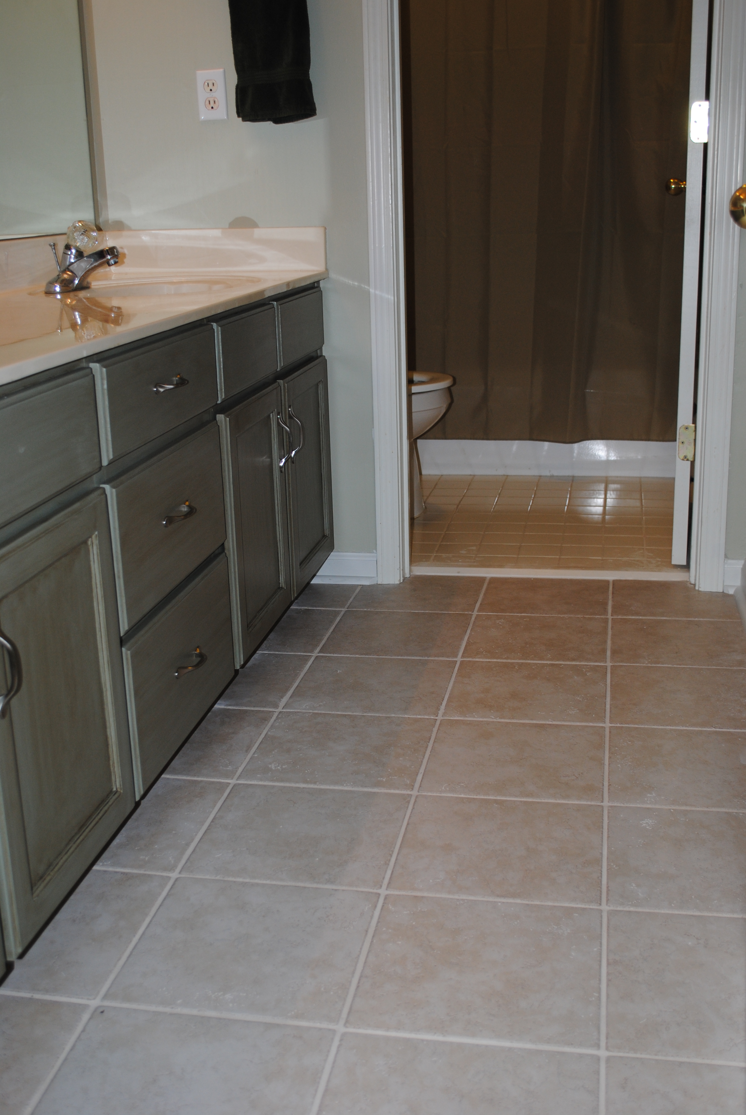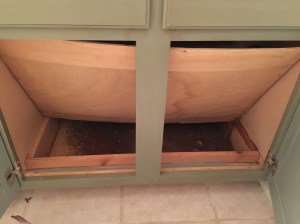 In the bathroom upstairs, they had to pull up the base of the bathroom cabinet…