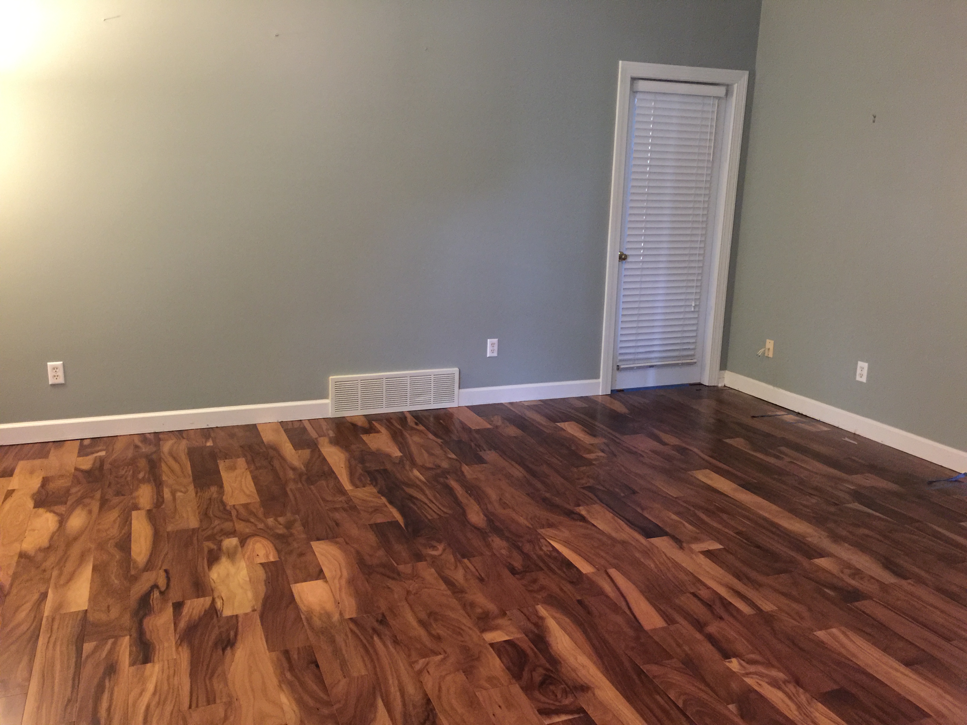 The next step in this arduous process was to replace the entire bedroom floor. This turned out to be quite a deconstruction task as the flooring was glued down and required repeated cutting and rigorous chiseling up. But the new flooring, once complete, looked great!