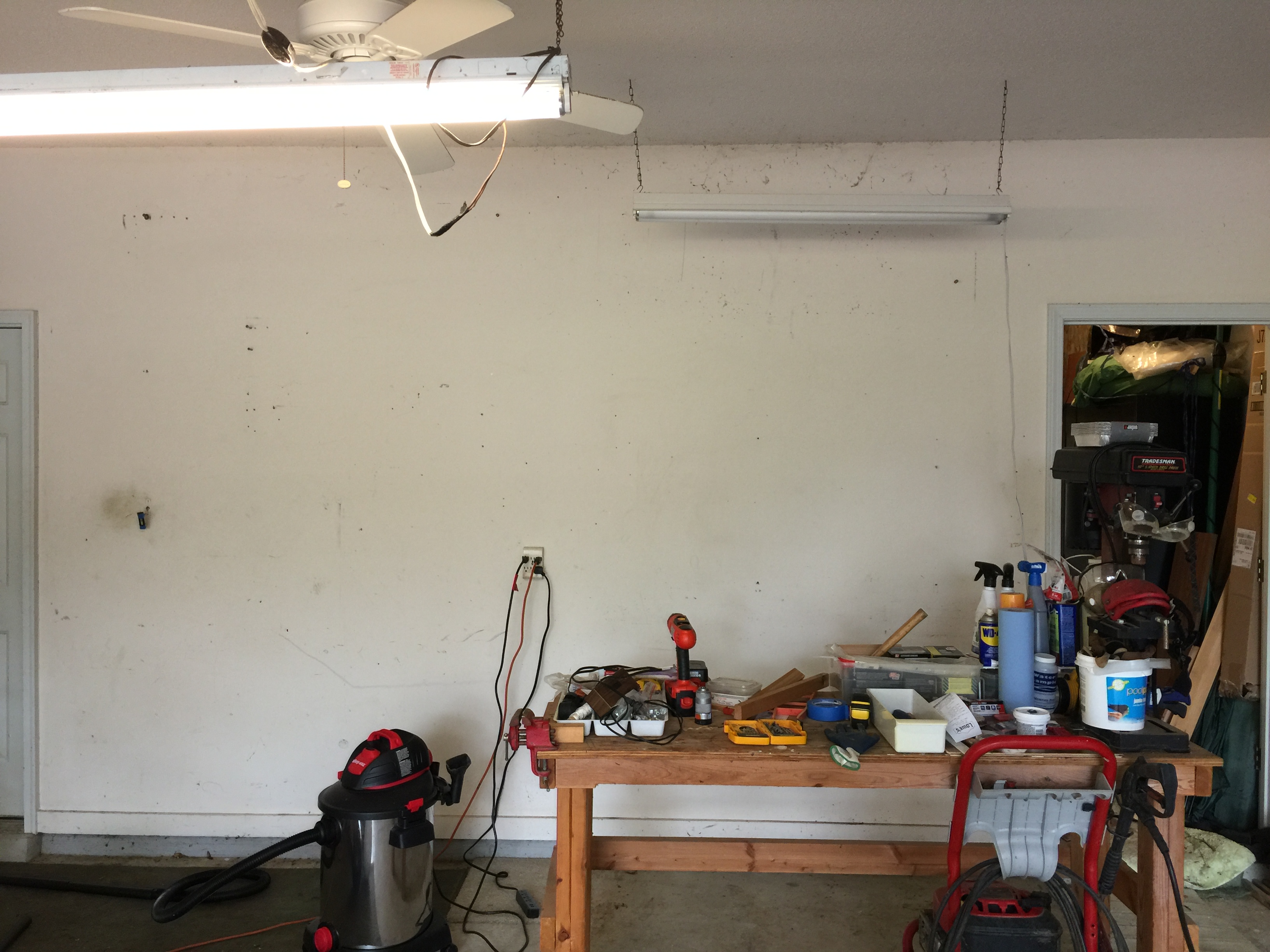 Next up was the garage wall with the workbench. In this photo, the vast network of spider webs is easily visible at the top, seeming like a miniature version of the World Wide Web…