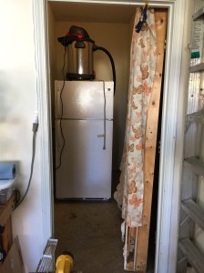 In order to clean the spider webs from the ceiling of the utility closet, I had to put my vacuum on top of the refrigerator.