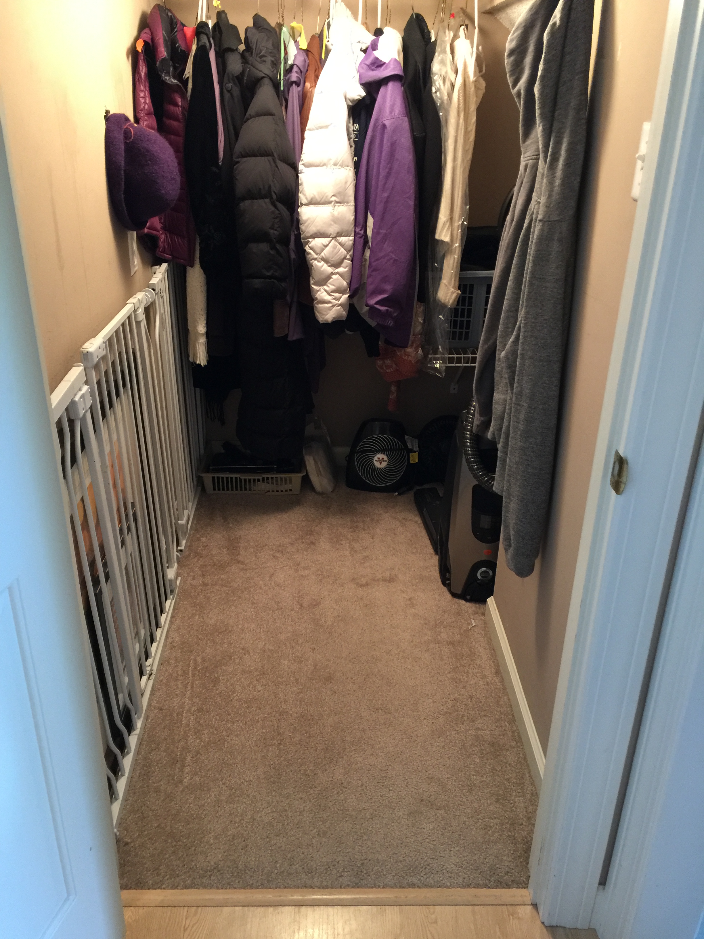 While in my technical field, the moniker “short-term” usually referred to a period of time less that 3 months, many months actually went by before I returned to cleaning out closets but another opportunity arose when we had to replace the engineered hardwood floor in our bedroom, recounted painfully here.