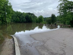 36 hours before the run was scheduled, Memphis received 11 inches of rain over night leading to flooding of the Wolf River. The photo above, taken the morning after the rainstorm, is of the parking lot next to the WRC Greenway where the registration and post-race party was to occur.