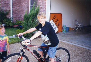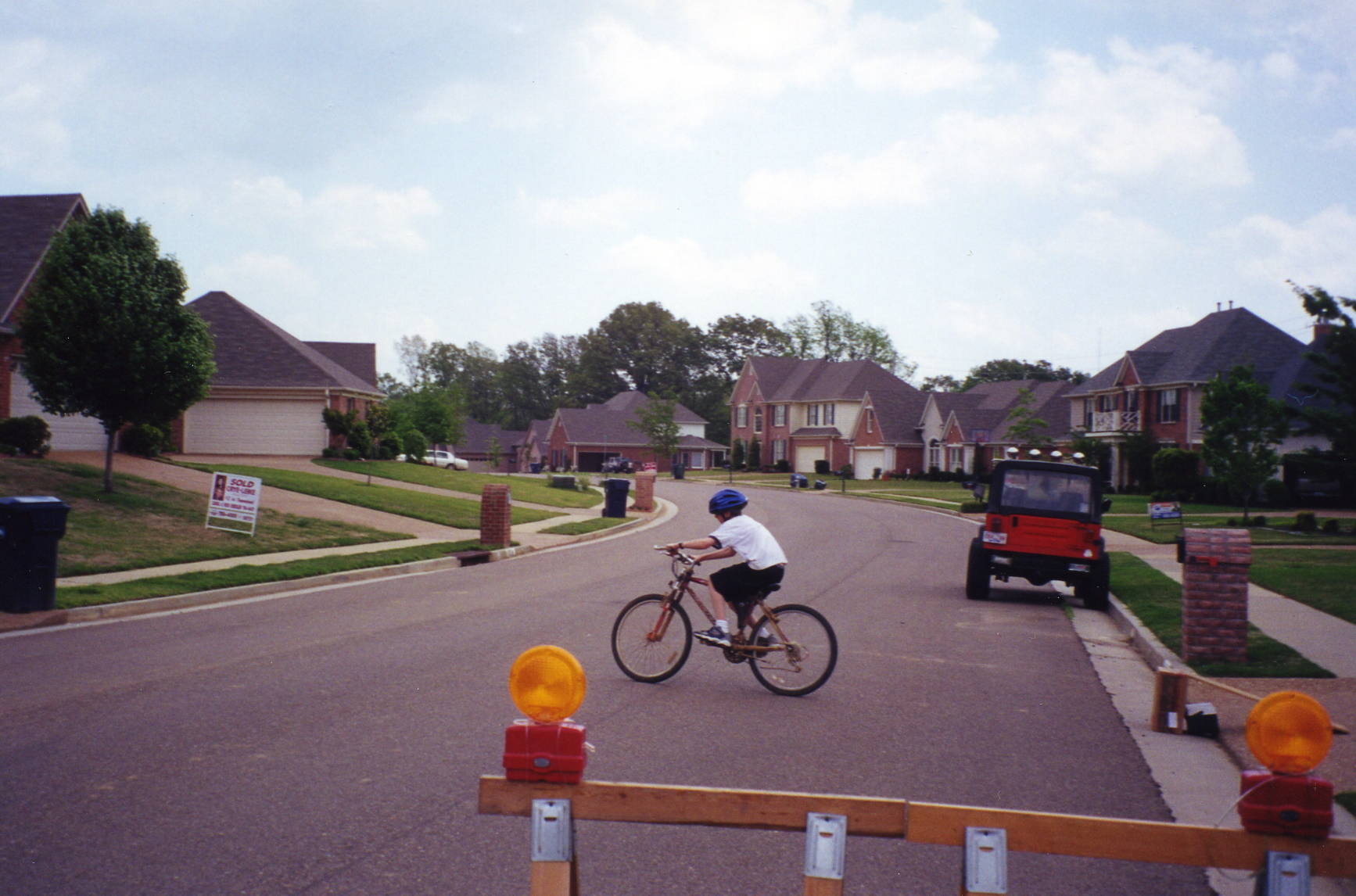 One of the first things our youngest son did after moving in was build a ramp, set up road signs, and begin taking jumps off our driveway. He had a blast collecting the discarded signs with his older brother and jumping his bike.
