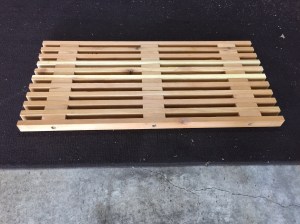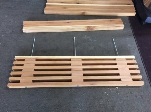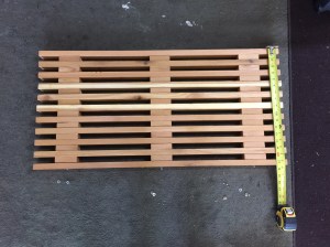 When I added the last board to the first doormat, I was surprised to see that the threaded rods were just barely long enough. When I had measured my existing door mat, I found that they were about 14 inches wide. Laying my tape measure next to the mat, I found it was 17 and ½ inches. Obviously, these cedar boards were thicker than the pine boards I had previously used.