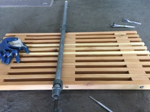 The furniture clamp again came in handy when attaching the last three washers and nuts. A socket wrench on both sides allowed me to tighten the nuts on each rod firmly in place. Stepping back, I was pleased to see one finished door mat…
