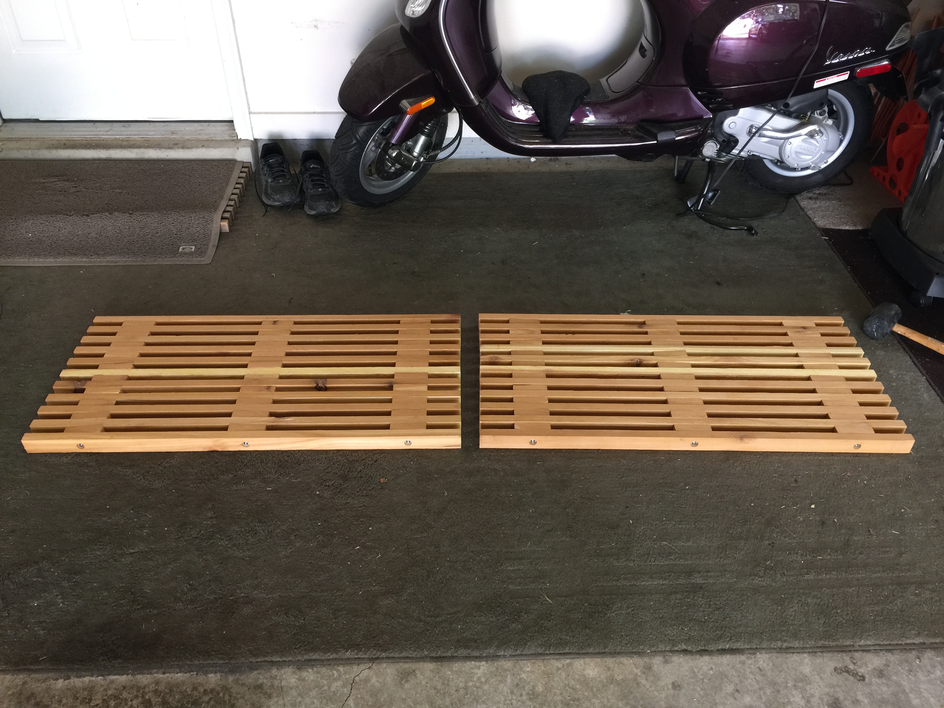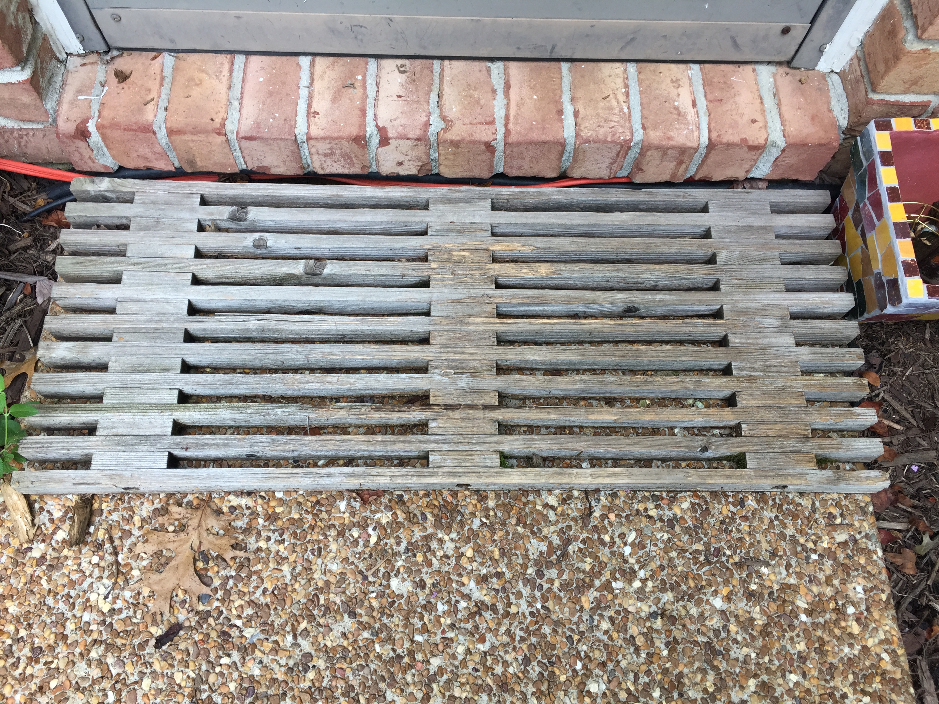 I couldn’t have been happier to finally throw away the old dilapidated doormat but when I went to replace it with the one from our other more-frequently used backdoor (where the new one would go), I noticed that it probably would not be long before it too would begin to look like the one now in the garbage. Which meant I would be building another doormat soon. But at least I had all this new learning that would make it an even easier fun project.