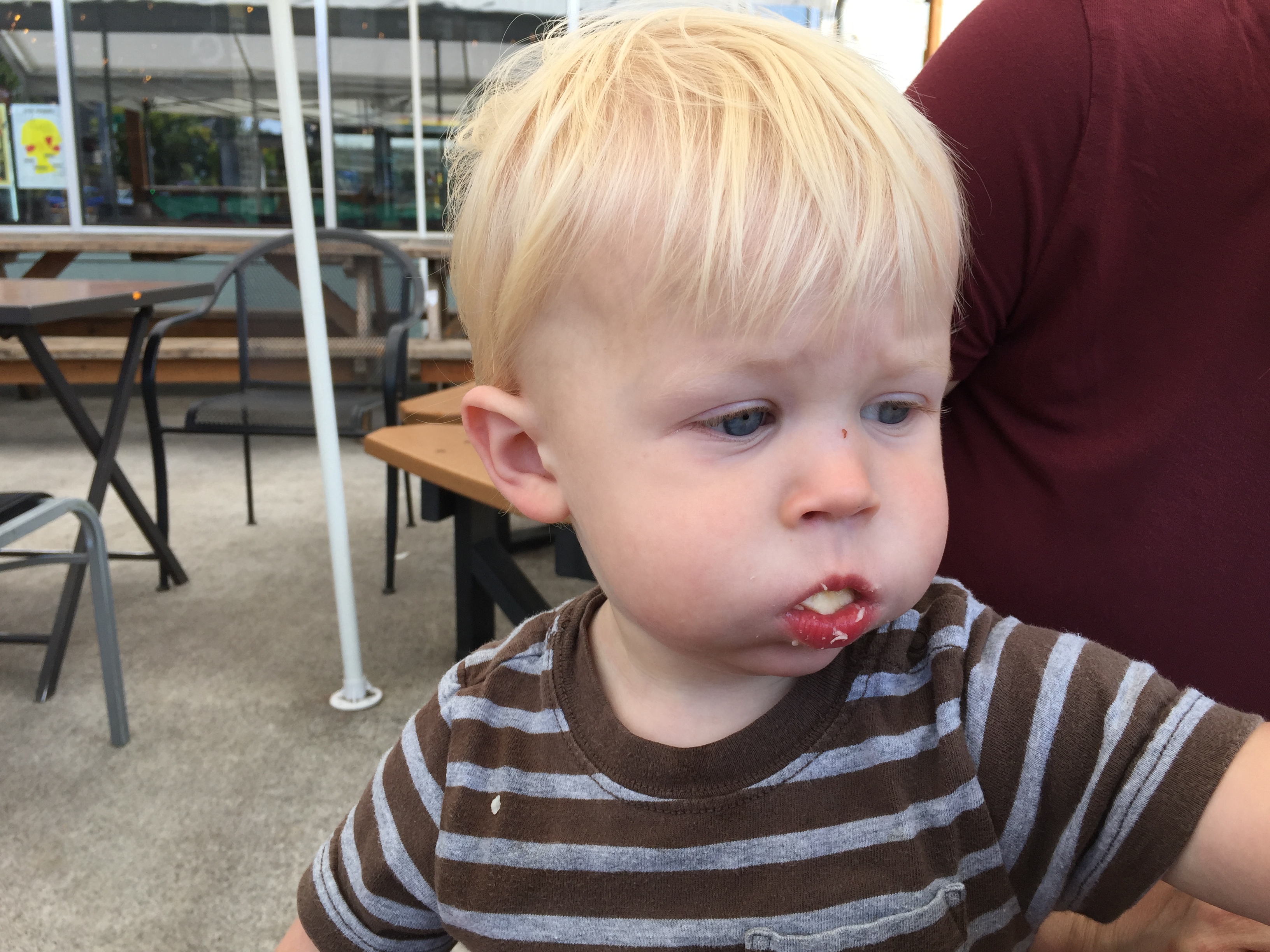 While I downed my beer, our little fella downed an entire banana.