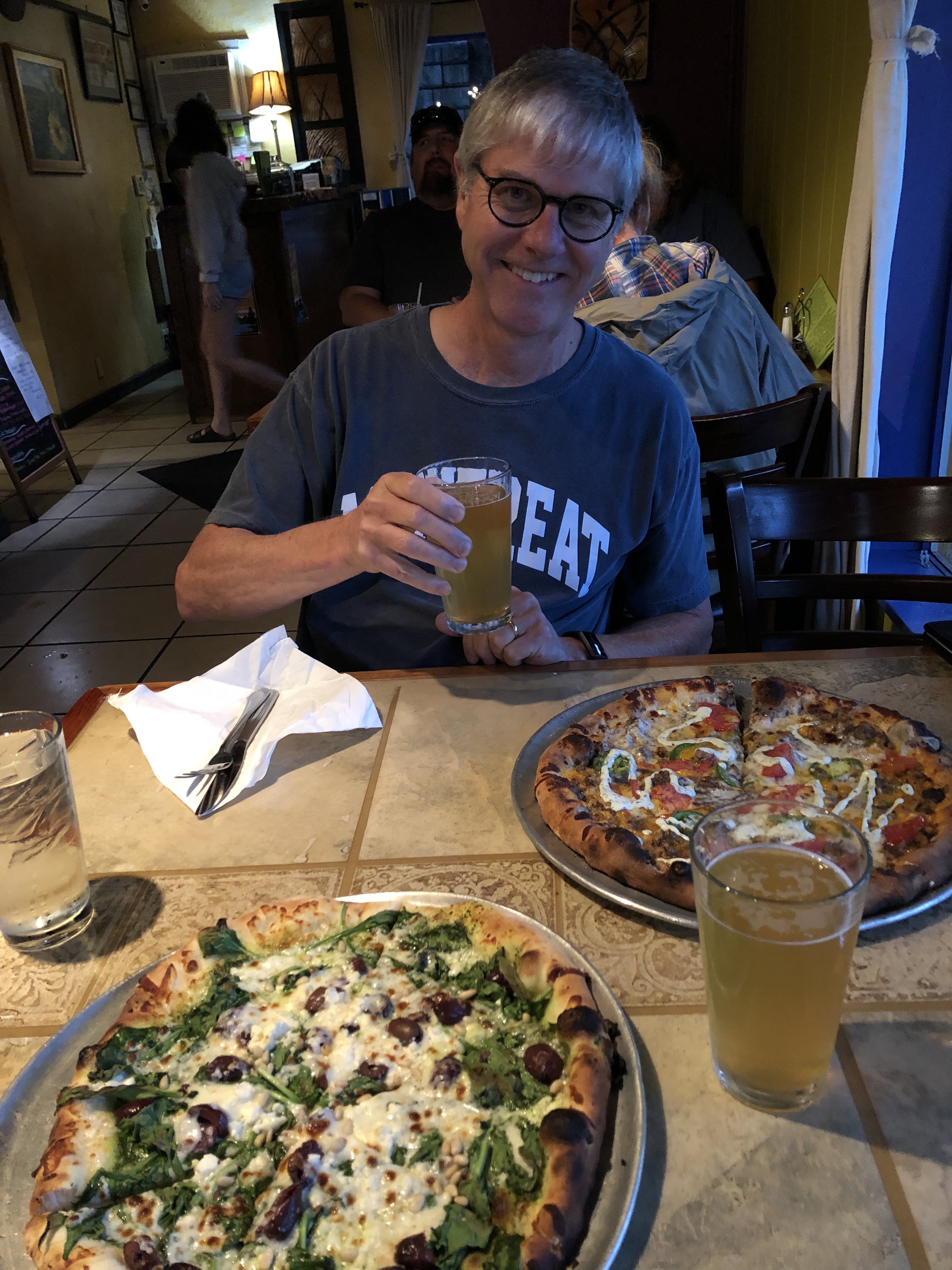We then headed to one of the small craft breweries in Black Mountain (very kid and dog friendly) where we had another delicious IPA and fun brotherly conversation.  Afterwards, we took a short walk across the parking lot to a pizza restaurant where we enjoyed great pizza and more great beer.
