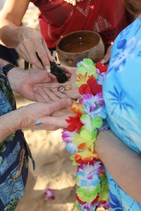 The officiant then explained what all we would be doing.  As a part of the ceremony, we were encouraged to exchange something with each other, and we chose to exchange our wedding rings along with Hawaiian leis.
