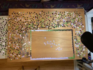 I also enjoyed this post and had a couple of giggles! You know I work puzzles too inspired by your blog so don’t stop now. I for one am downsizing to 500 piece puzzles as I don’t have a table big enough here in the apartment to hold 1000 piece workings. Looks like with the virus I can start working on some again!!