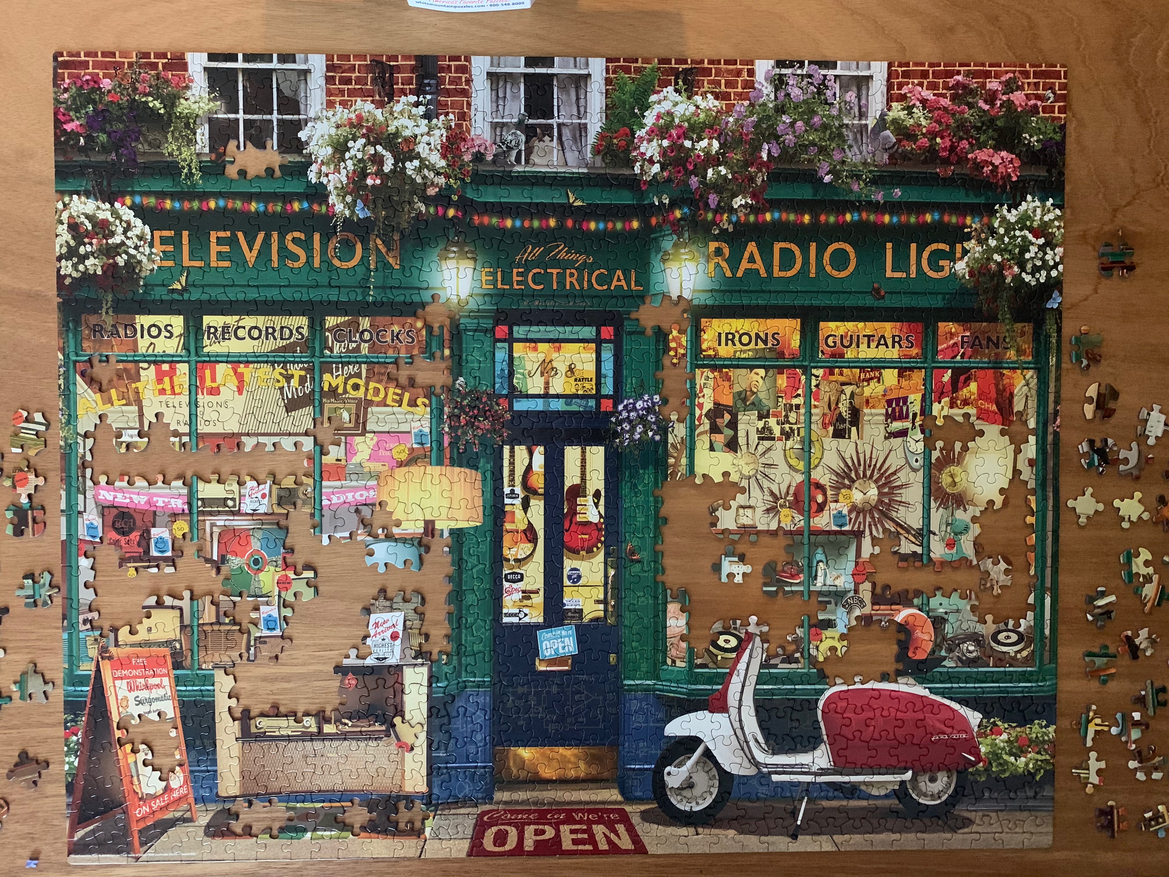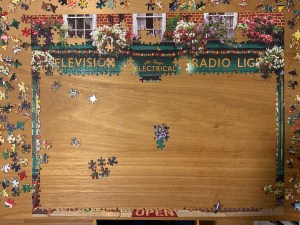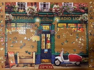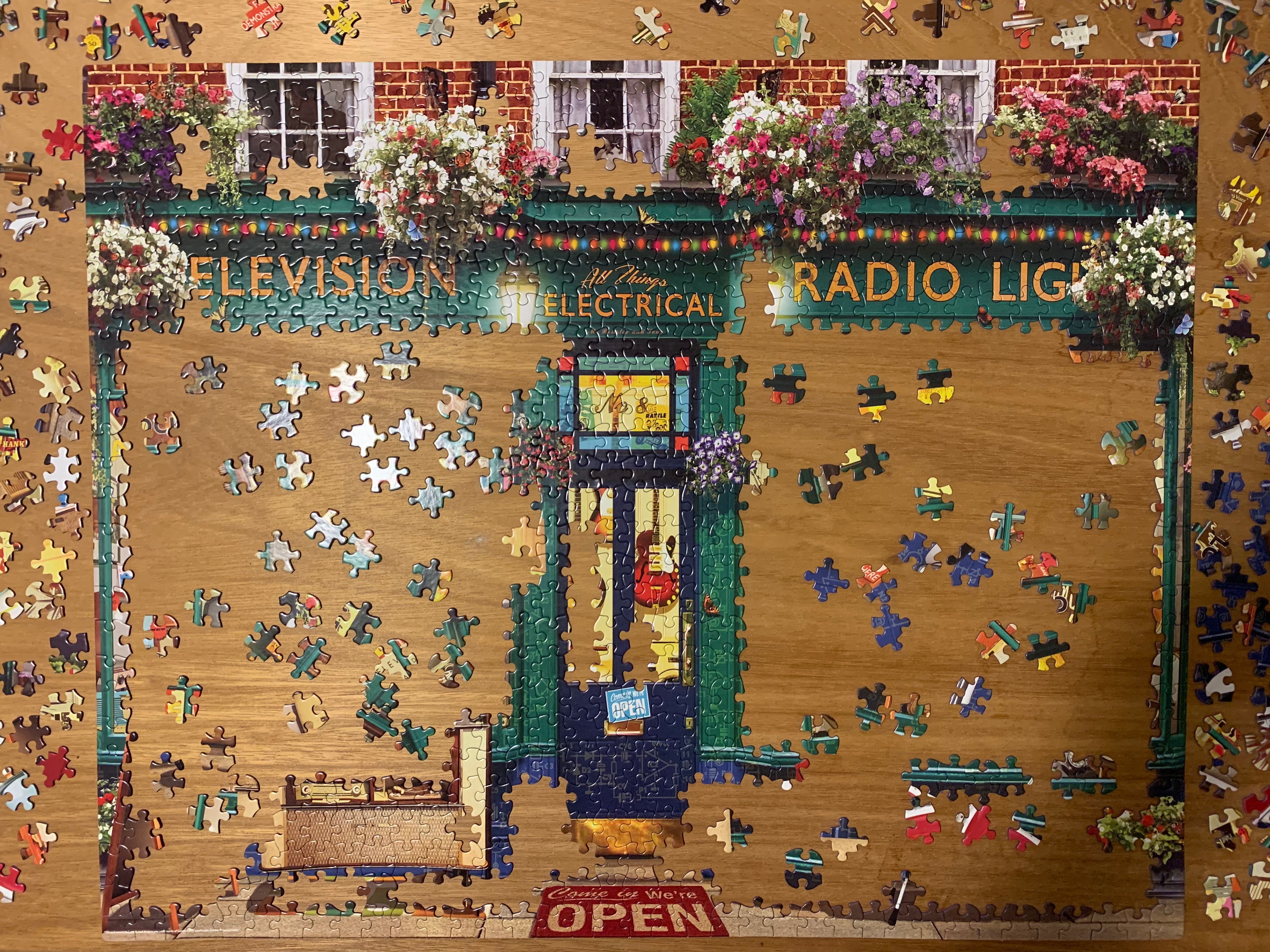 I next decided to continue building from the top down towards the bottom working on the major feature in the center of the puzzle, the shop door. This also proved fairly straight forward and confirmed for me that this was going to be a much easier puzzle.