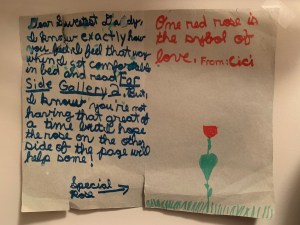 But when I came to the bottom of the box, I realized that some of the favorite cards I expected to find were not in there. In particular, the one my brother gave me one year that said as best as I could remember, “Happy Birthday Big Brother” on the front of the card and on the inside, “Thanks for letting me live.” Enclosed was taped a small golf pencil reminding me of the story our mother used to tell us of how one day, she found me in my brother’s baby crib poised over him just about to stab him with a pencil (no doubt jealous of all the attention he was now getting).
