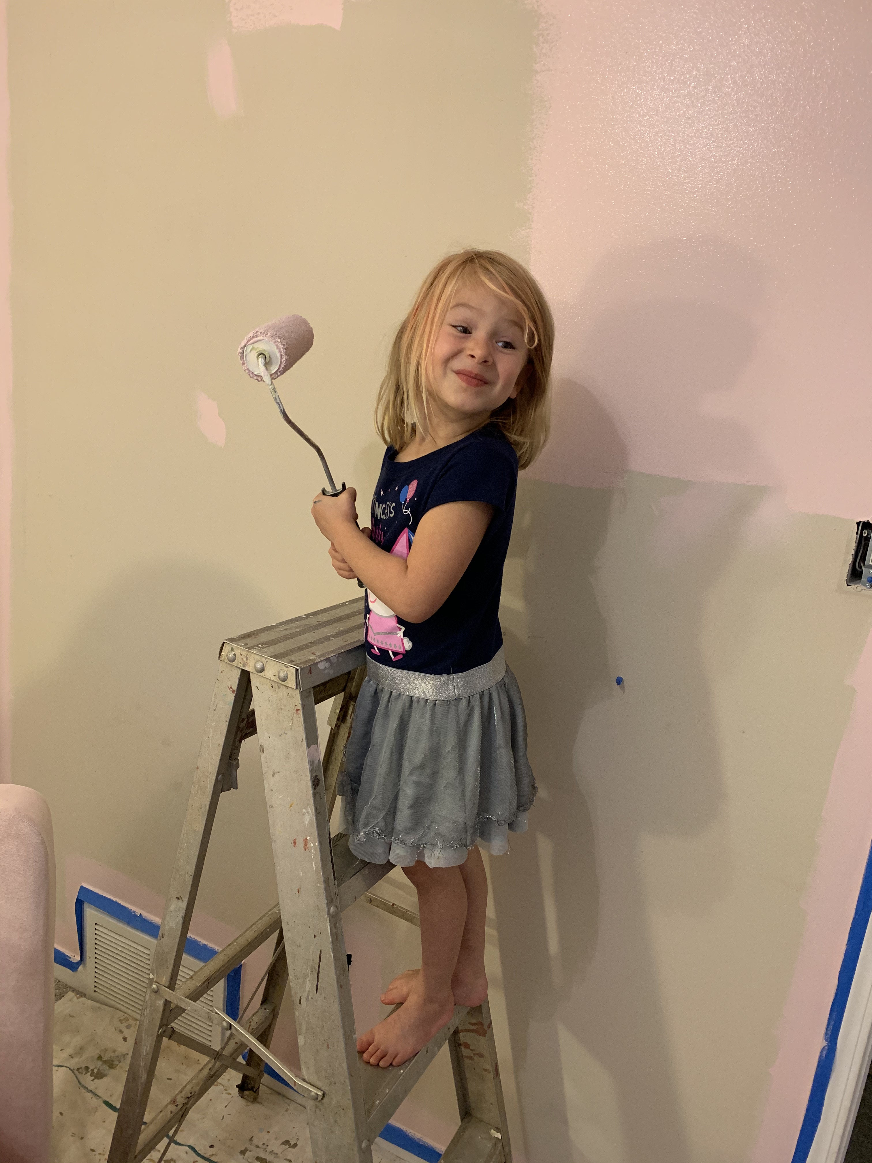 I love to paint and the first room to paint was my granddaughter’s bedroom. She loves pink so obviously pink was the color of choice. She enthusiastically volunteered to help.