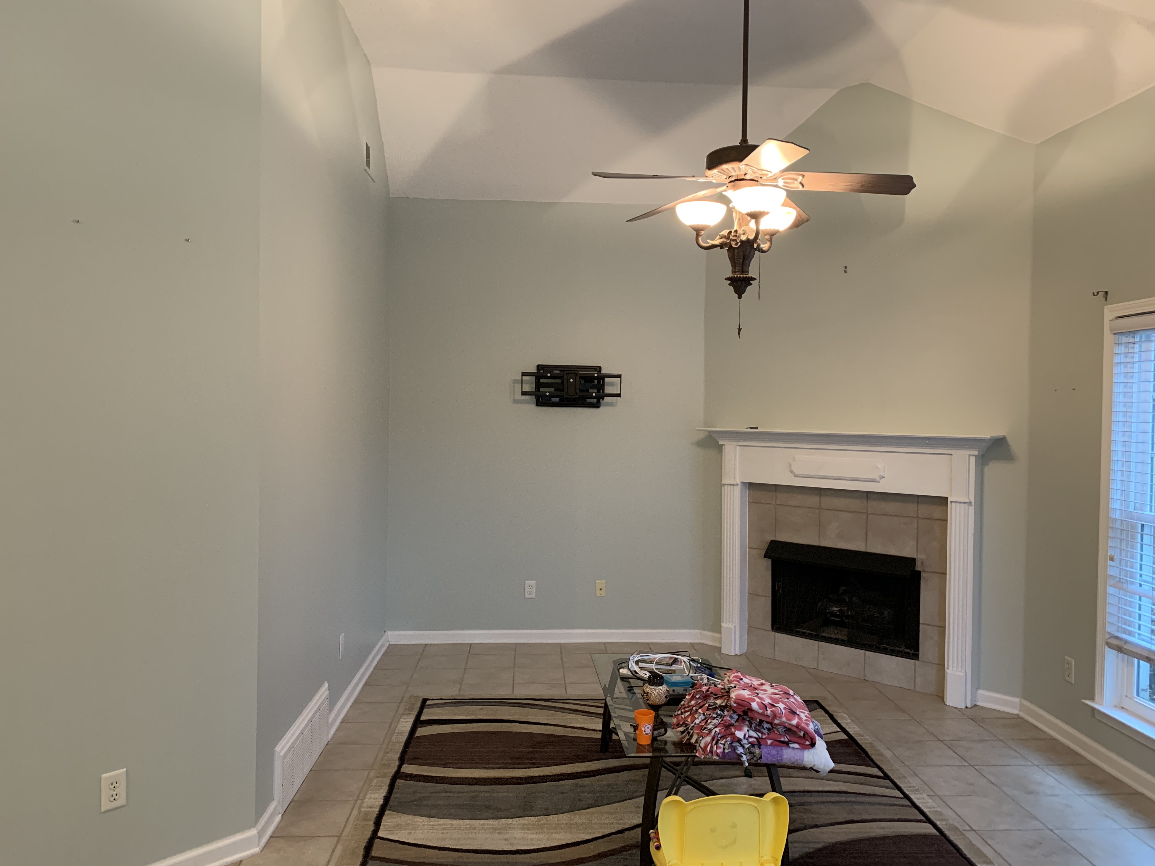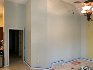 After moving out the furniture, it took me a day to tape and paint two coats with a brush. On the next day, I was able to roll two coats (the really fun part as you see so much progress in a short time) and when I removed the tape the following day, it looked quite nice.