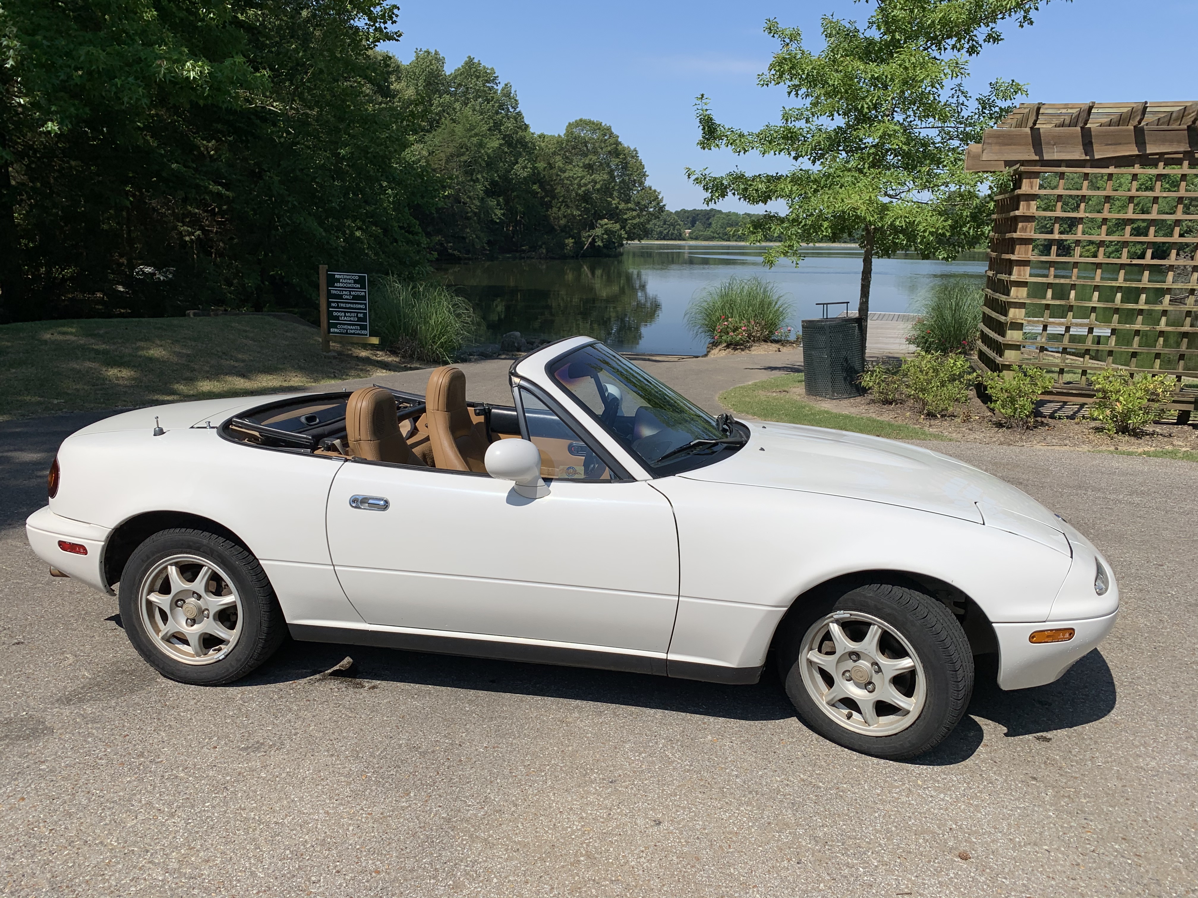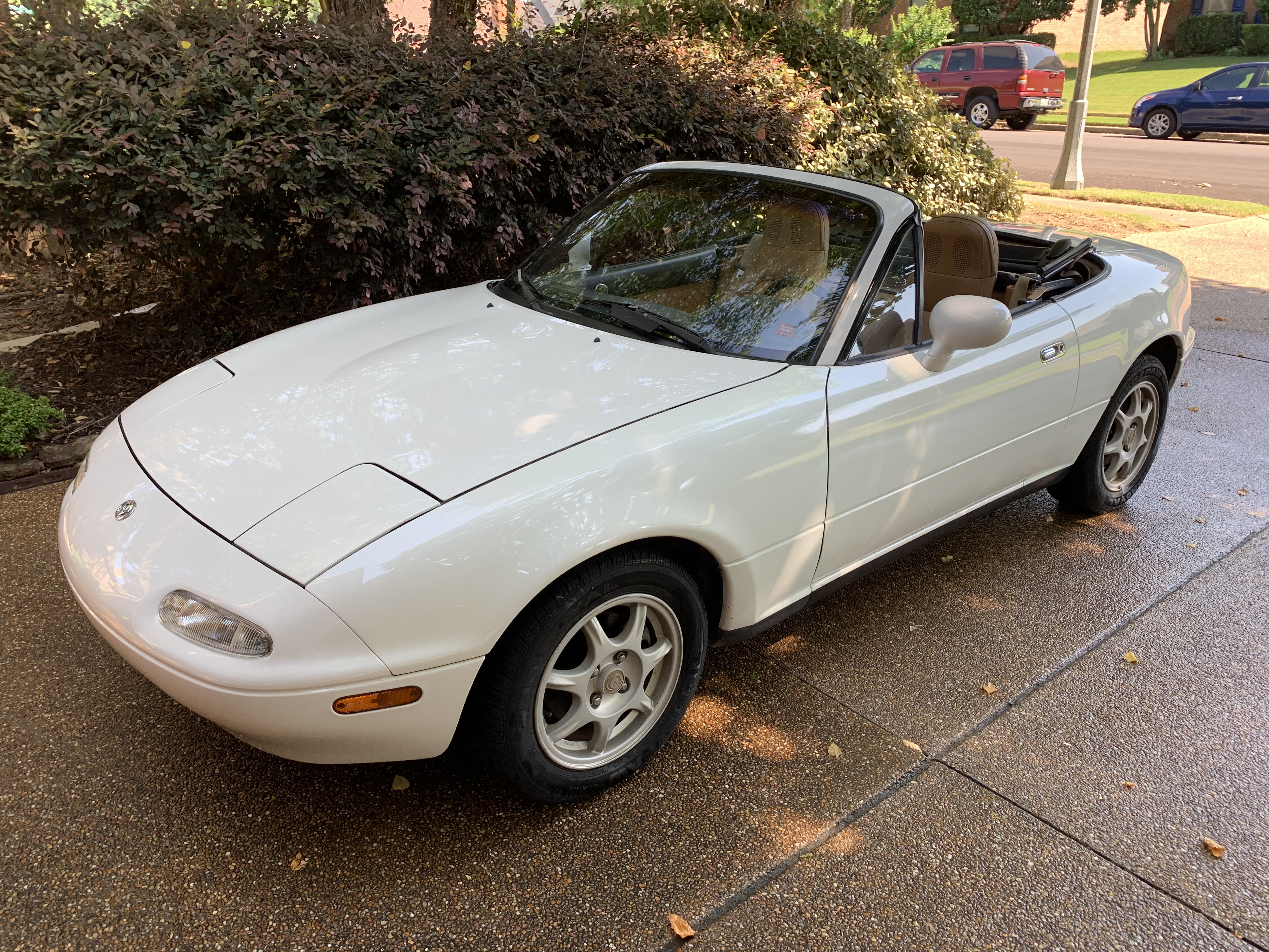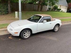 If you read my two most recent posts about her (to me all fun little sport cars like these are females), Has Her Time Come? and A Classic!, one would be lead to believe that I would never part with her. But sadly, after months of angst, the day finally came for me to say goodbye to my white 1994 Mazda Miata, affectionally known as “Marshmallow,” so named by one of our artist friends for her toasted tan colored top over miniature white body.