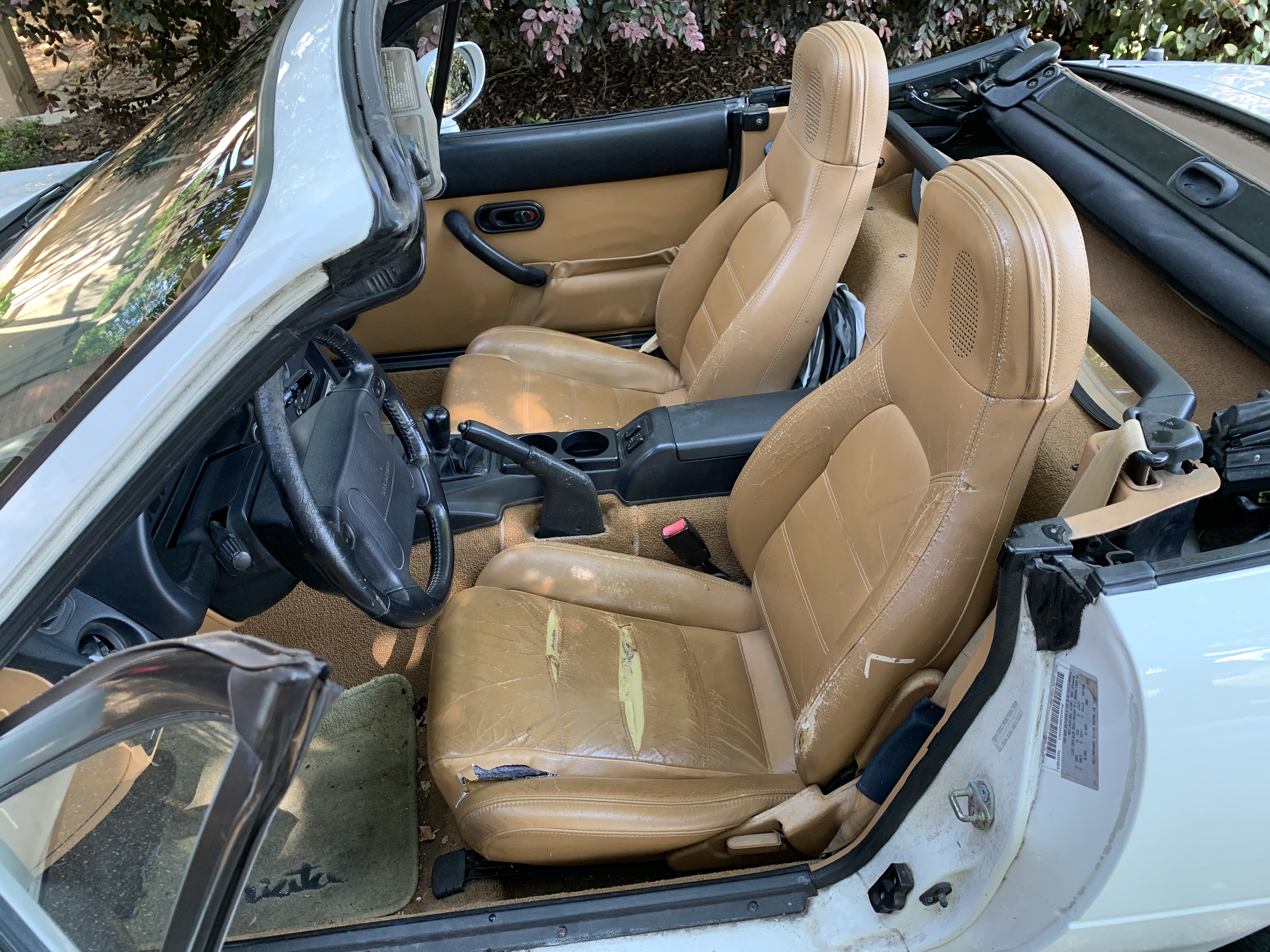 Since I routinely take all our cars into the dealership for all repairs, I didn’t have a trustworthy mechanic that I could take her to. I did learn that a parts house that specializes in Miata parts did sell the replacement parts, but I knew I would not be able to do the job myself when I explored online and discovered that the entire frontend had to be removed. At my wife’s urging, I explored the cost of the Mazda factory Miata MX-5 restoration program but found the cost would be over $40,000. Eventually I learned that my local tire retailer performed this type of work but the cost to replace the ball joints and tie-rod ends would be about $1400—twice its estimated value two years ago. And even if I did bite the bullet and repair her, the car will still have a broken air conditioner, a nonfunctional radio/CD/tape player, an unexplained flashing Air Bag light, and leather seats sorely in need of replacement.