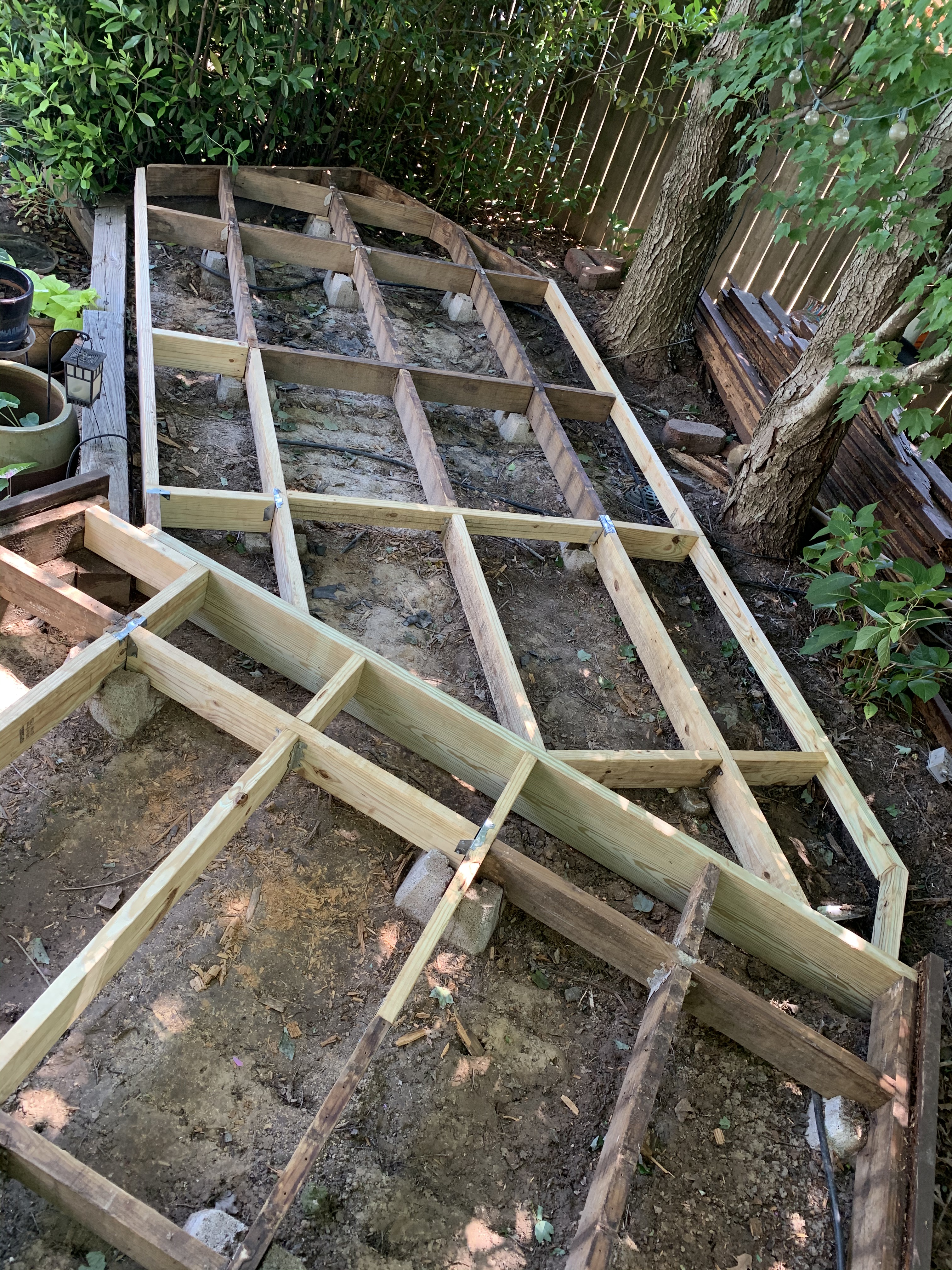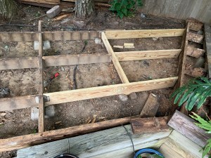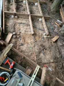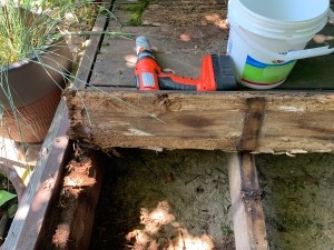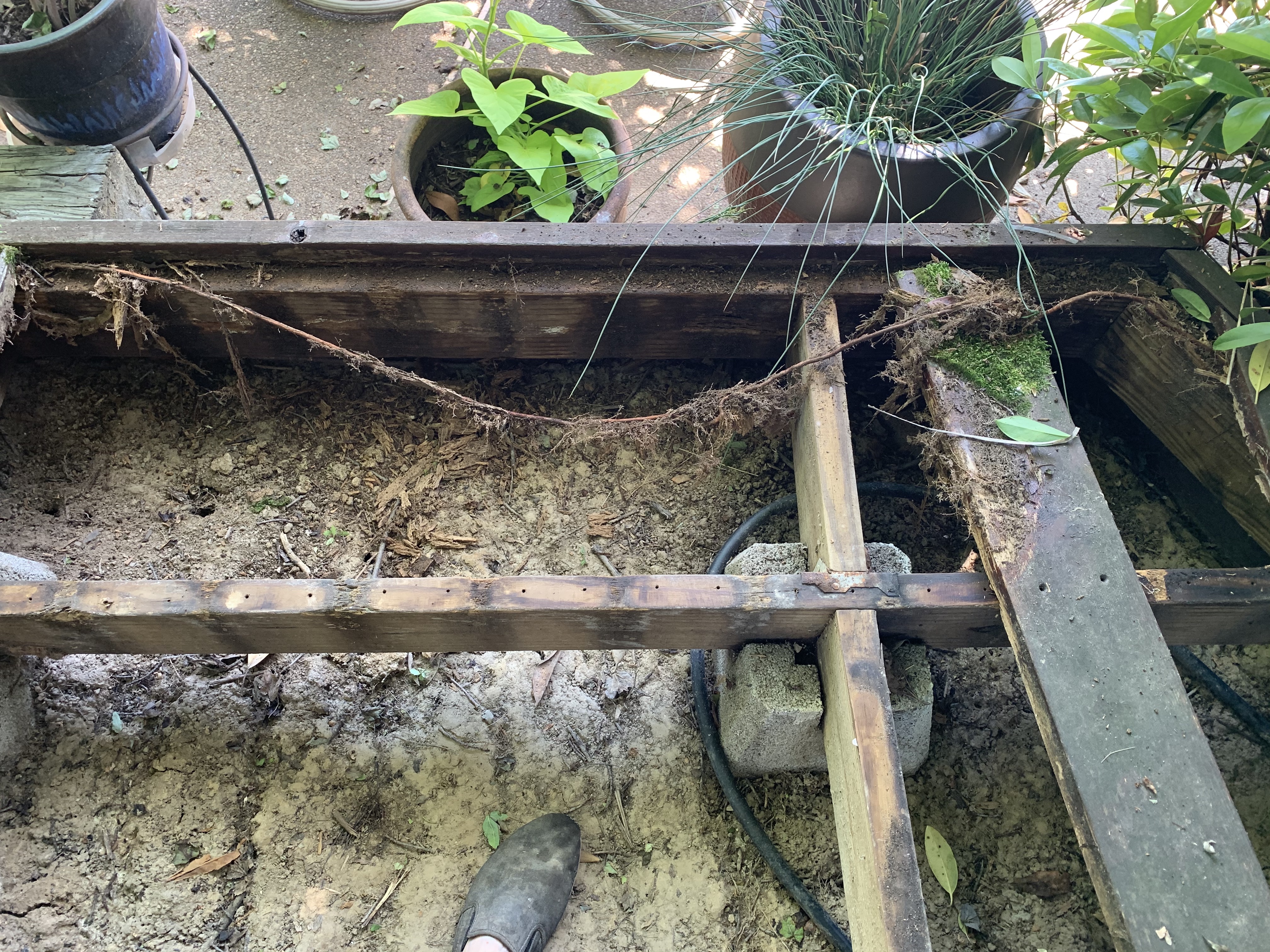 Working on the backside, I also found that some of the joists themselves, made from pressure treated wood, had also rotted since they were now in direct contact with the ground, probably washed there over time.