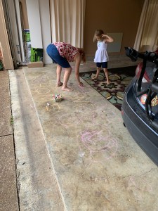 After lunch and a little more playtime, our granddaughter could hardly suppress her anticipation any longer. She kept asking every few minutes “were they home yet?” to which we had to reply, “not yet.” An hour later, even us adults couldn’t wait any longer and so we decided to drive on over to their house. Arriving early gave us time to stow our granddaughter’s things after her two nights of “sleepovers at Mimi’s house.” We kept ourselves busy straightening up things around the house and making a welcome home sign in the garage.