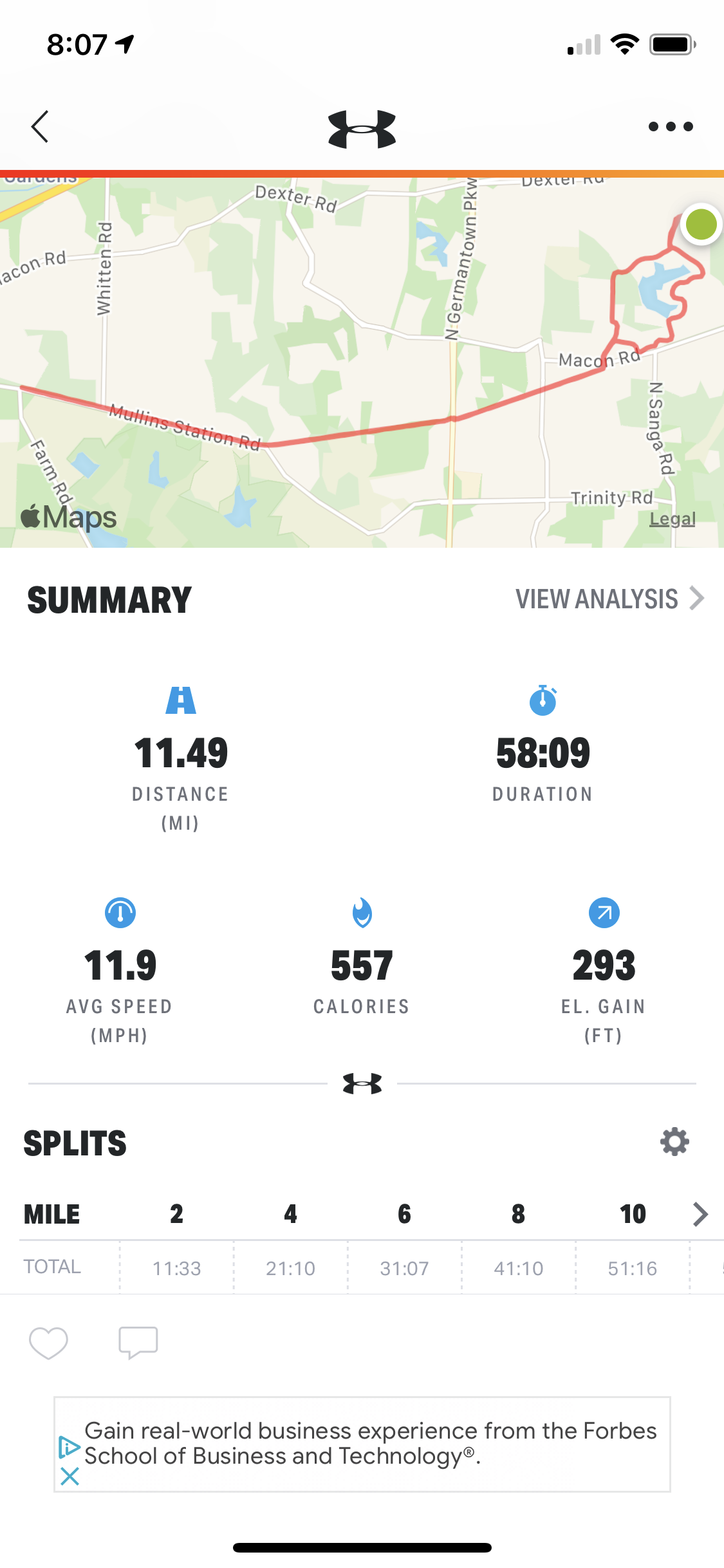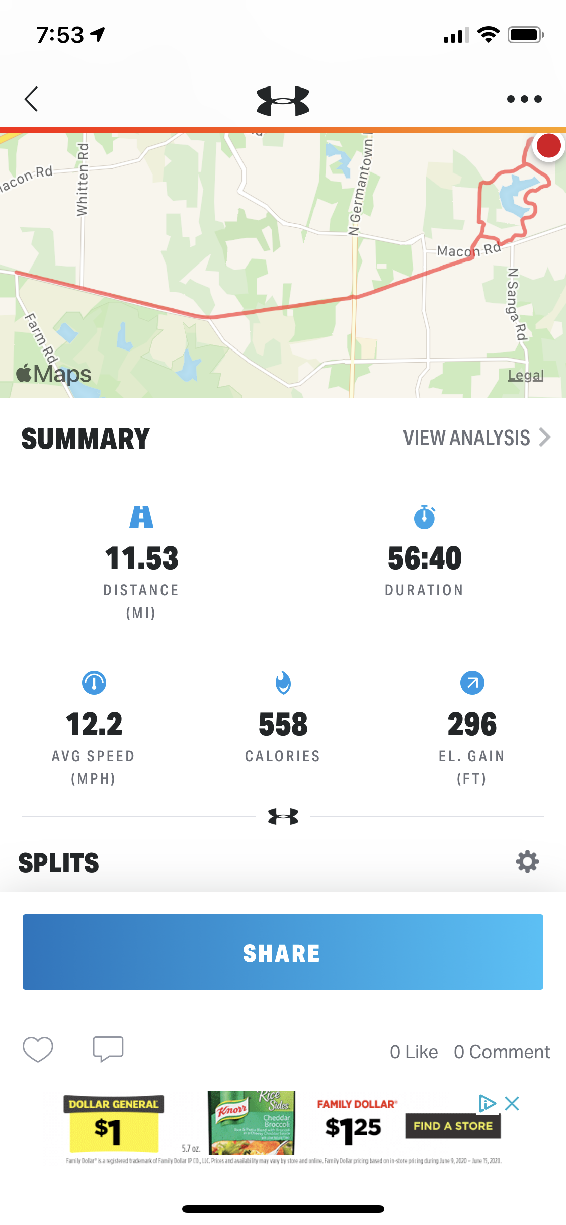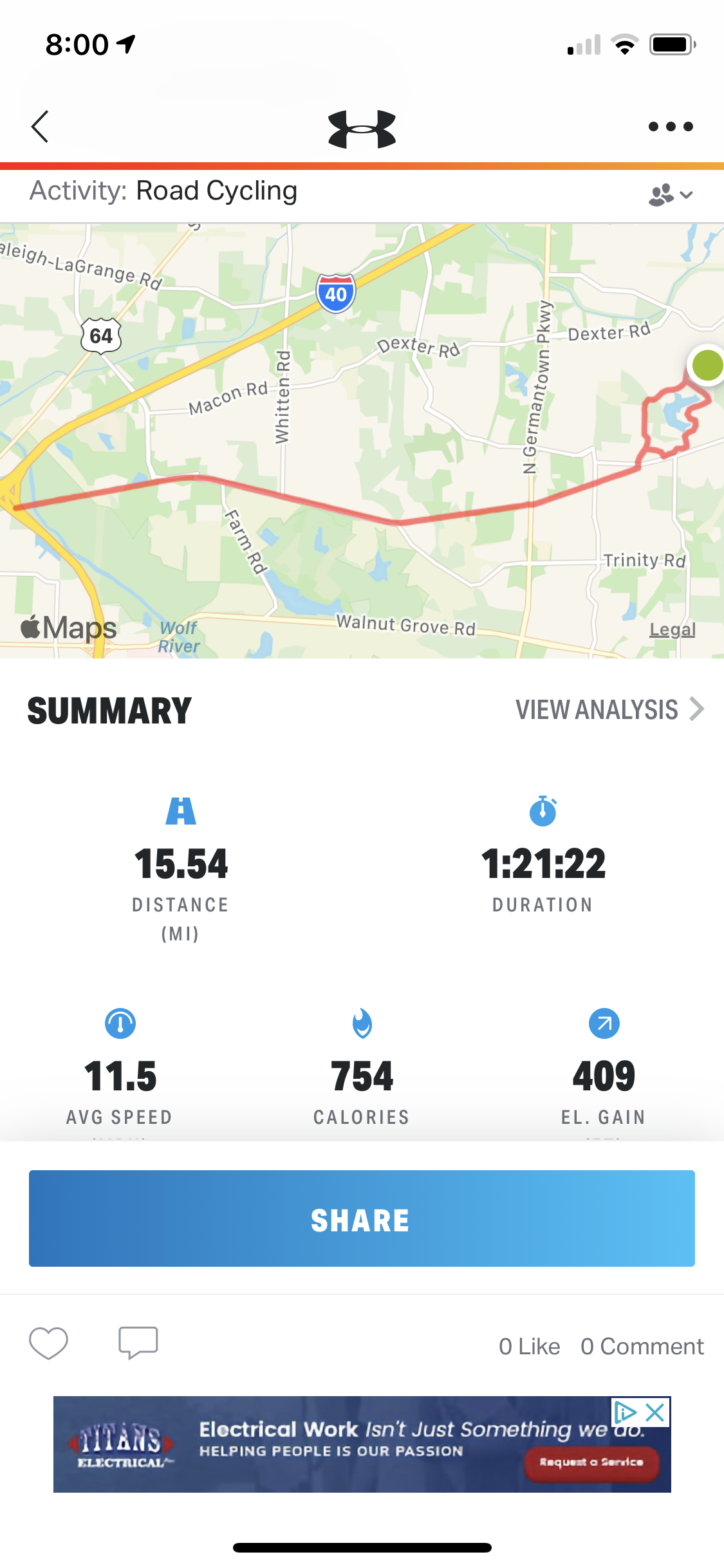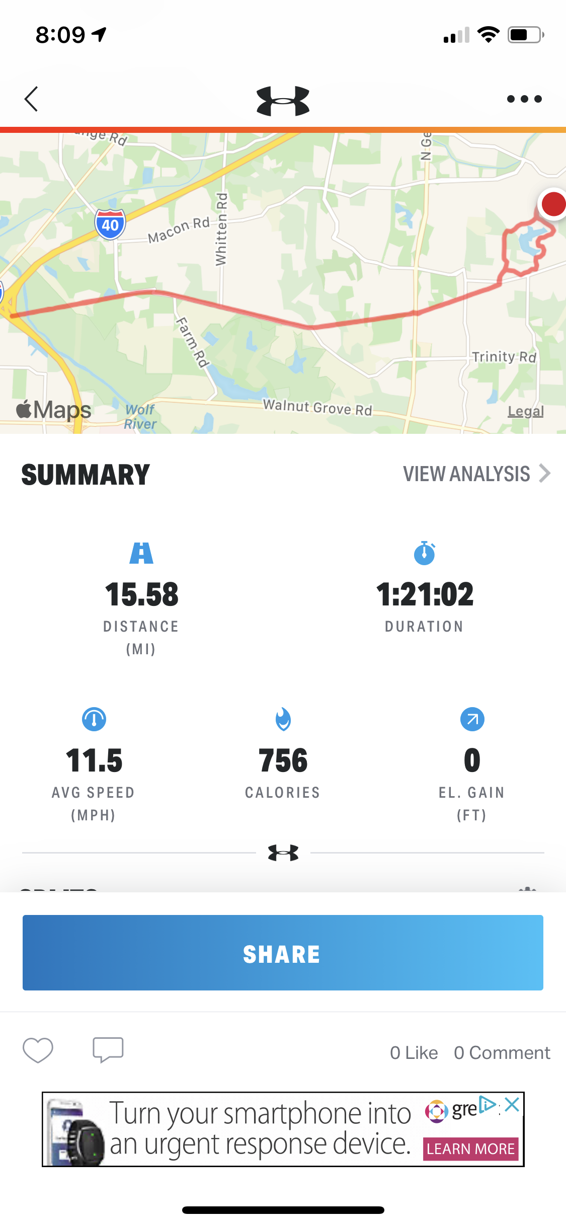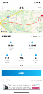 While on that ride, my friend told me about an app he used to track his bike ride. I got it for my phone and then over the weekend, rode the full length of his usual bike ride by myself to see if I could do it. According to my odometer, from my house this worked out to be about a 16.3-mile ride…