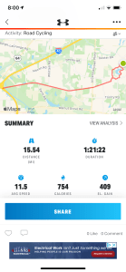 Over the next several weeks, I biked more frequently and in one instance, biked 6 days in a row. I began to rely solely on my phone app rather than my odometer and just accepted that my former 12.3-mile loop that I was trying to beat an hour time in was actually 11.5 miles.