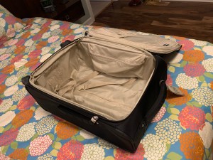 This marked my very first trip this year and when I got out my suitcase and laid it on the bed, I just stood there thinking I couldn’t remember how I usually packed it.  For years, I had used a soft-sided, wheel-less bag that with three main zippered sections, made packing a breeze.  But as my body aged, this bag seemed to get heavier each time I traveled and so I opted to return to a wheeled carry-on bag purchasing one in 2019.