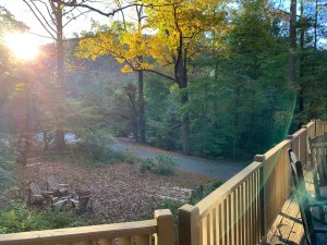 After arriving later that night and staying up rather late for two senior citizens (well almost two seniors) catching up with each other, we arose early enough the next morning to witness the sun cresting over the mountains and dawning on the first day at our mountain retreat.
