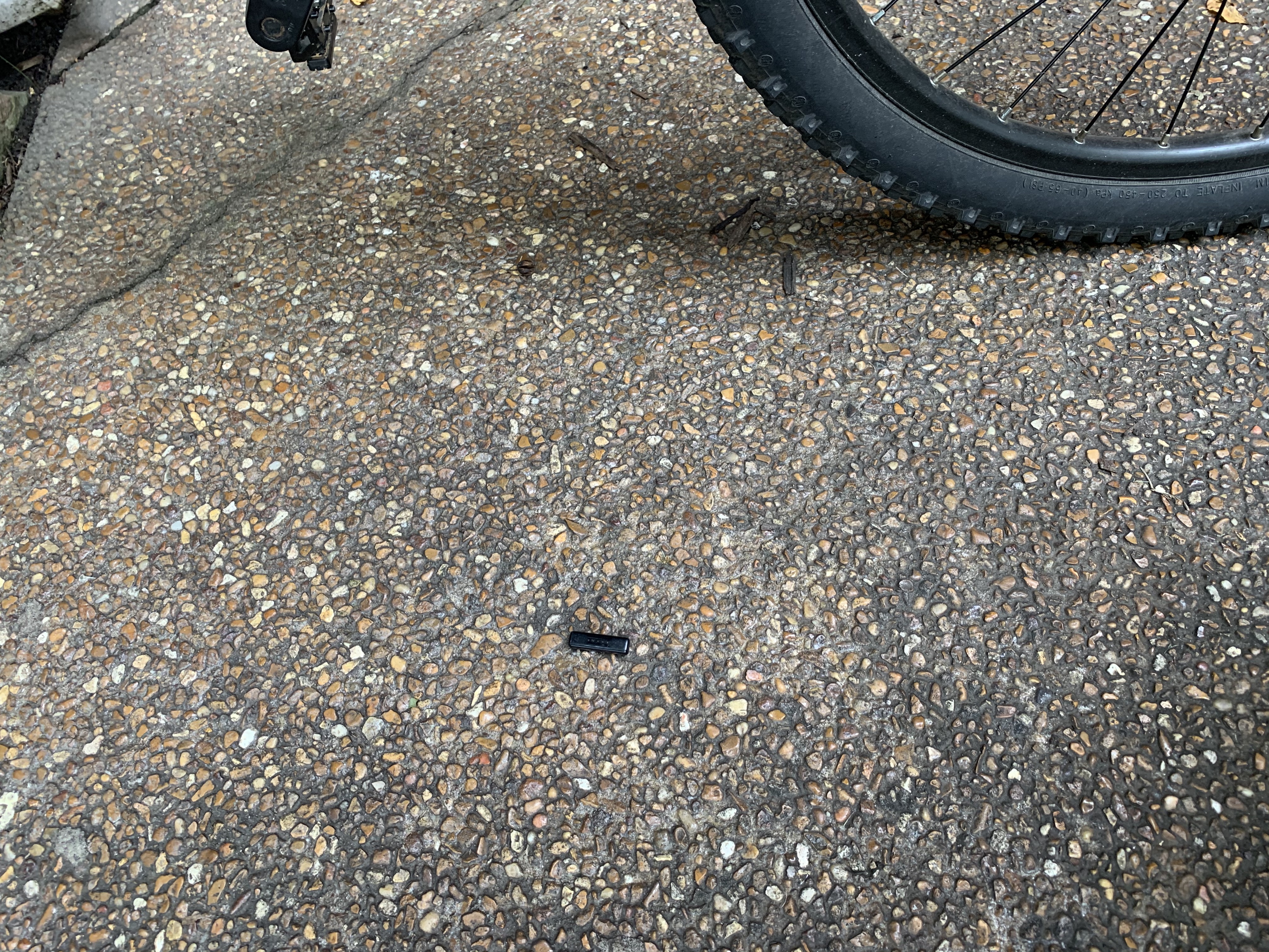 I pondered what to do but miraculously two days later when I was standing by the garage door where I normally park my bike prior to a ride, I looked down and there was the tracker.