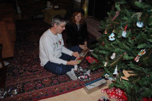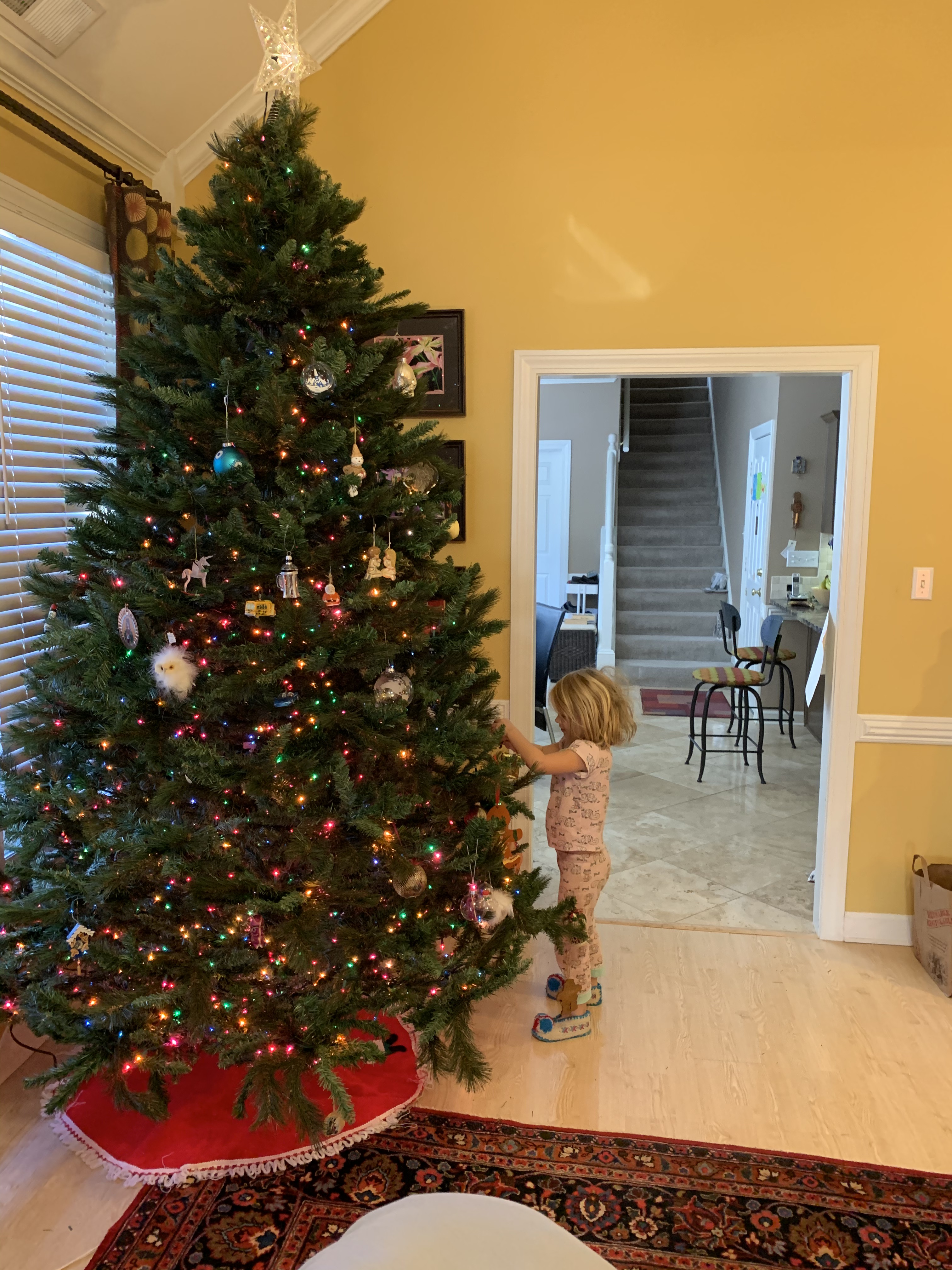 Now the tree was ready to begin to accumulate the colorful little packages underneath that would bring smiles of joy to their recipients on Christmas Day. And this year, the tree would be welcoming for the first time, the marvel of the little eyes of our newest grandson.
