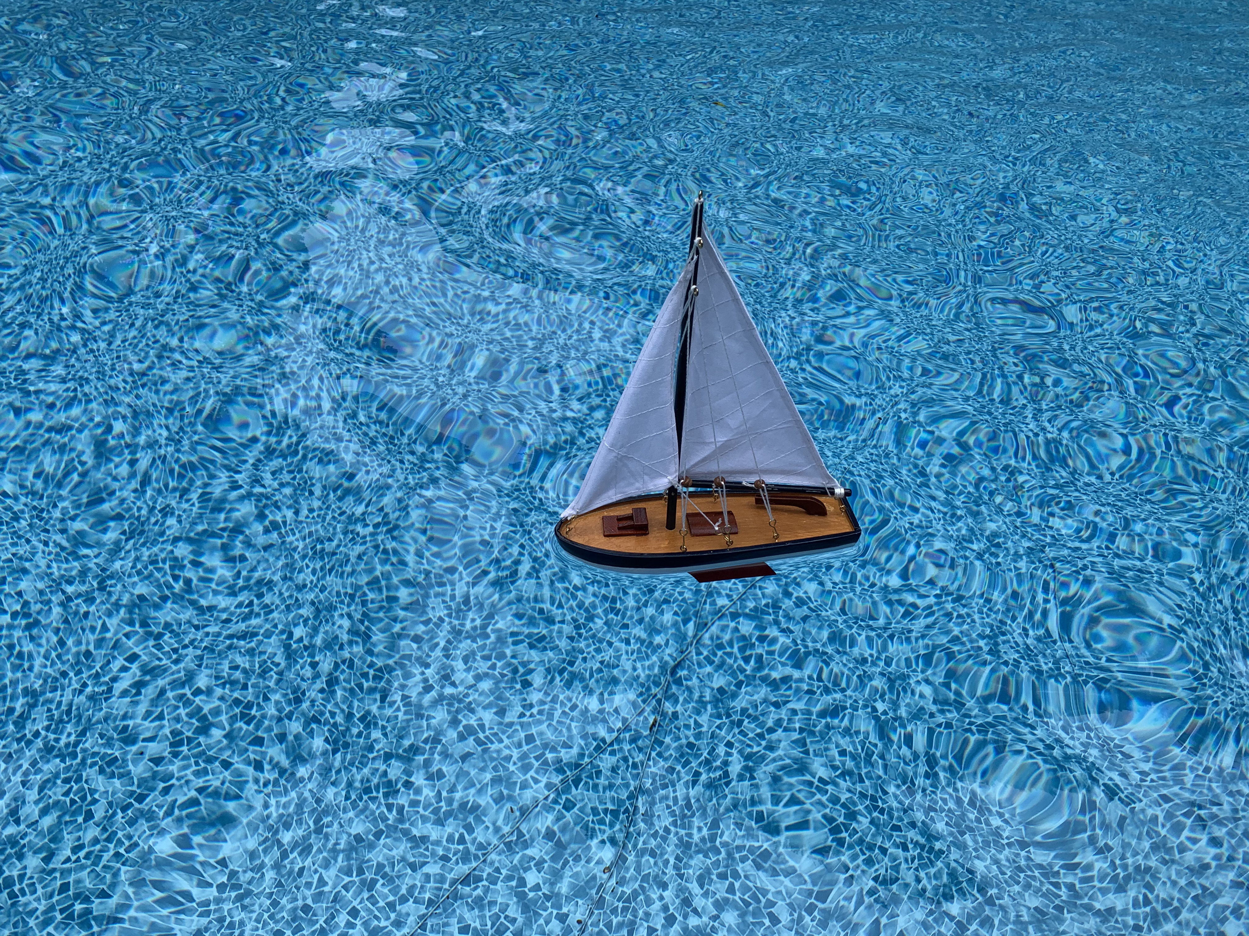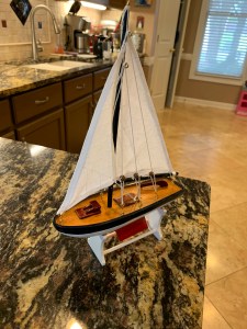 I searched online for either a sailboat or a speed boat of a similar scale (at 16 inches long, I estimated the toy Minnow to be about 1/12 or 1/18 scale). After several unsuccessful attempts, I finally found this cute little sailboat, although it was probably a bit smaller in scale.